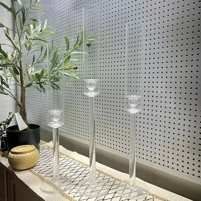 Acrylic Candle Holder for Table Centerpieces,Candlestick Holders for Wedding Living Room Decor, Use for Flameless Led Taper Cand