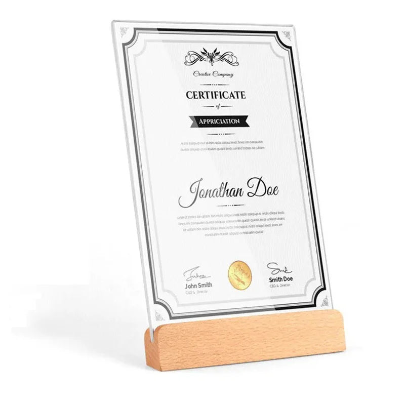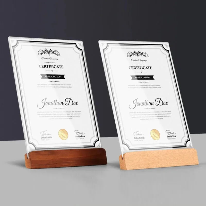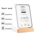 Acrylic Photo Frame Holder Transparent A4/A5/A6 Picture Certificate Camp Poster Display Stand Wooden Base Postcard Price Tag