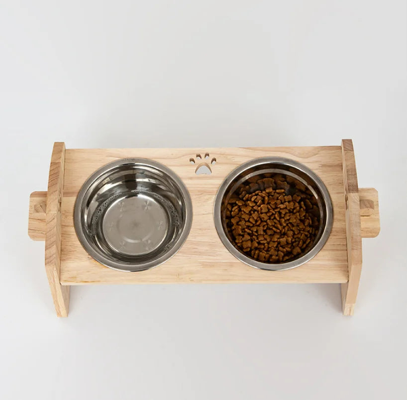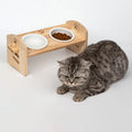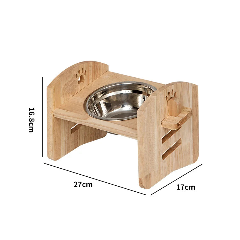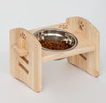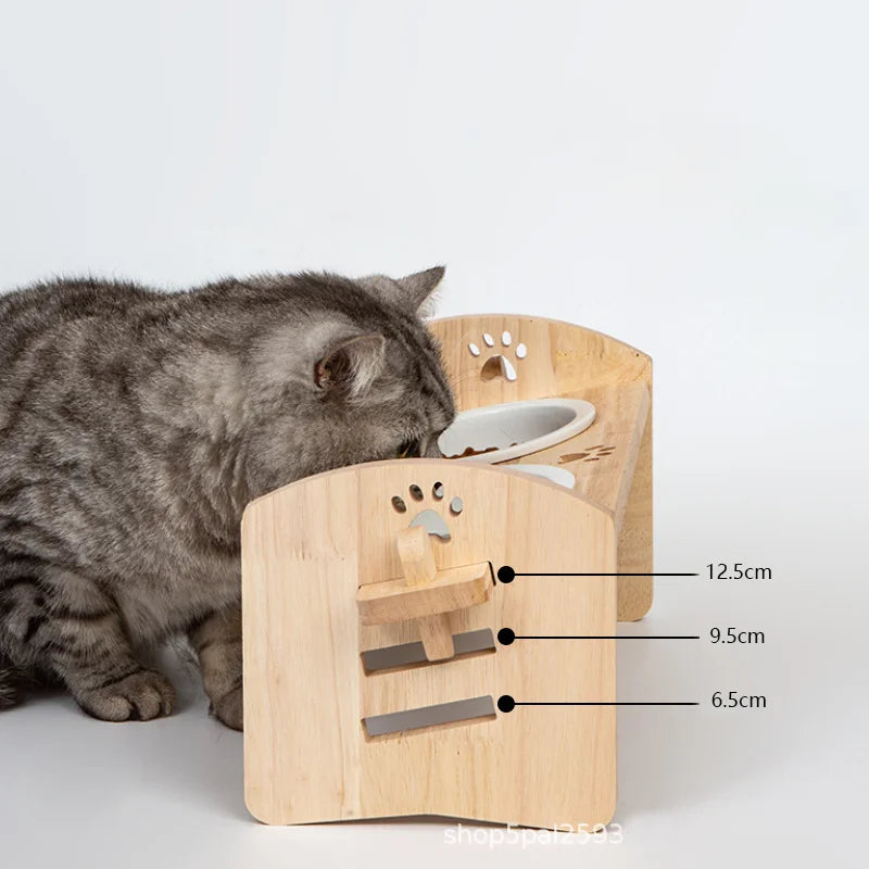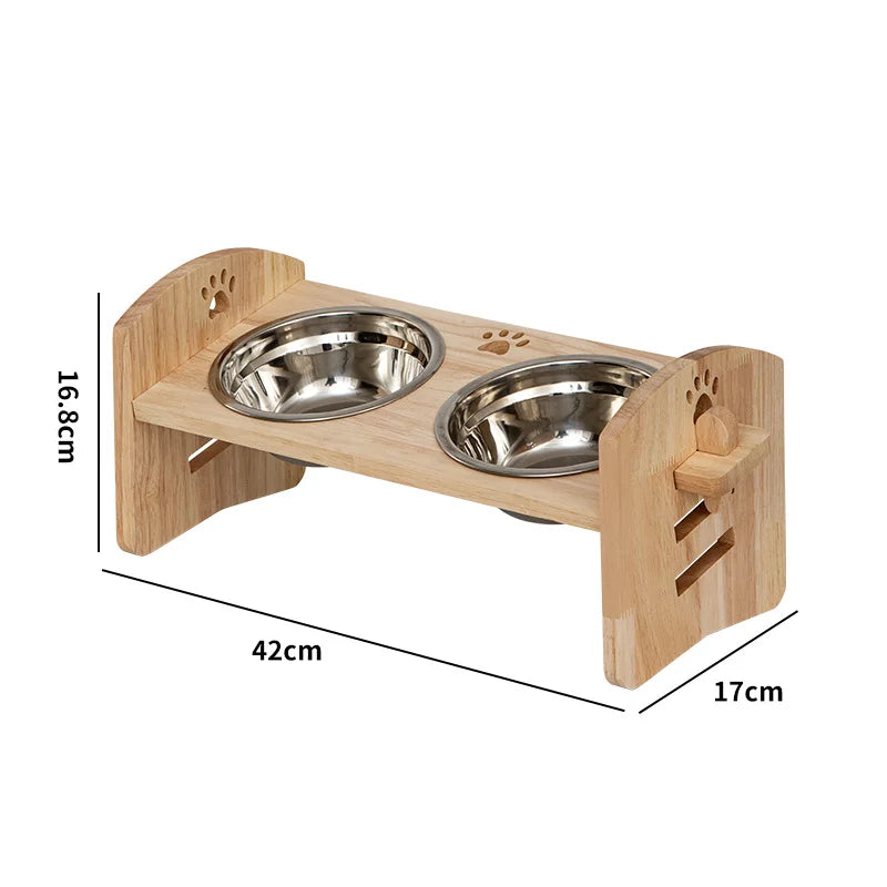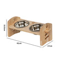 Adjustable Height Wooden Cat Bowl Stand - Anti-Slip Stainless Steel Pet Food Dish Holder for Dogs & Cats, Tilted Design