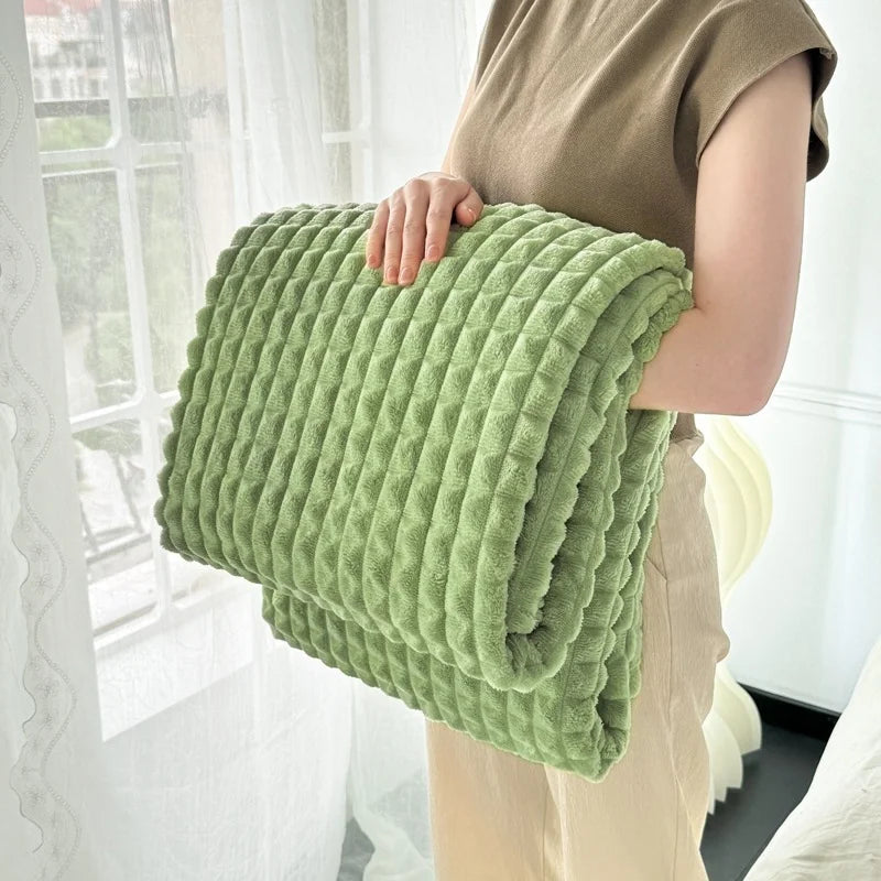 All-Season Plaid Flannel Blanket Soft Lightweight Faux Rabbit Fur Throw Blankets for Sofa Bed Single Double Warm Plush Bedspread