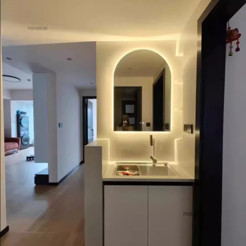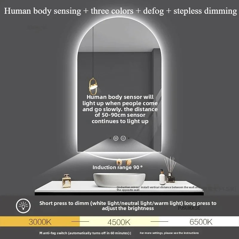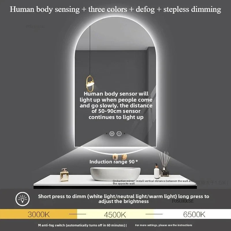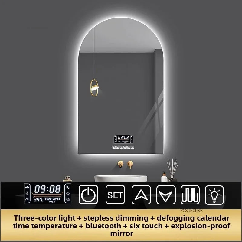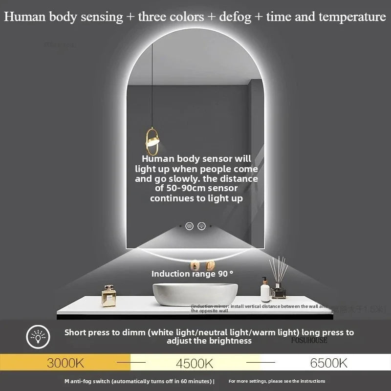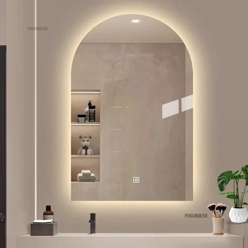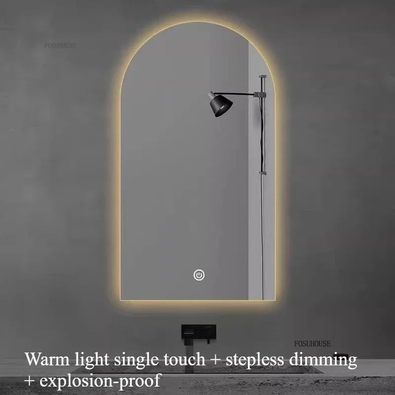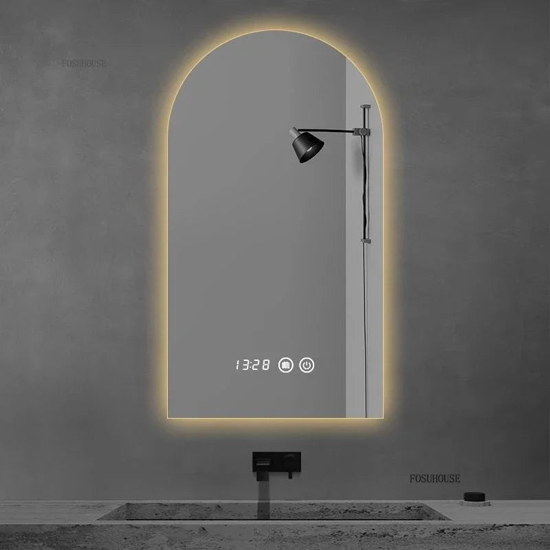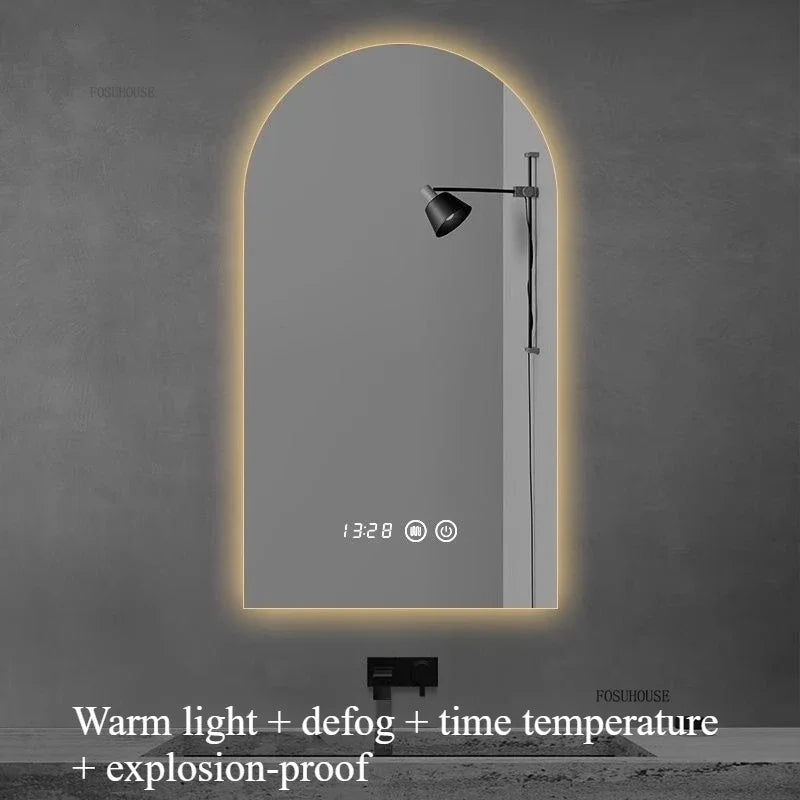 Arched Smart Bath Mirror Toilet Led Lighted Dressing Mirrors Bathroom Fixture Wall Mounted Home Semicircular Hair Salon Mirror