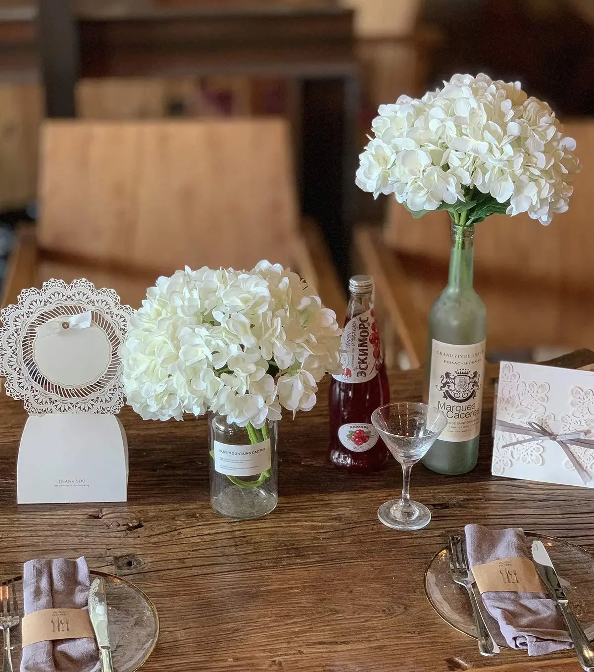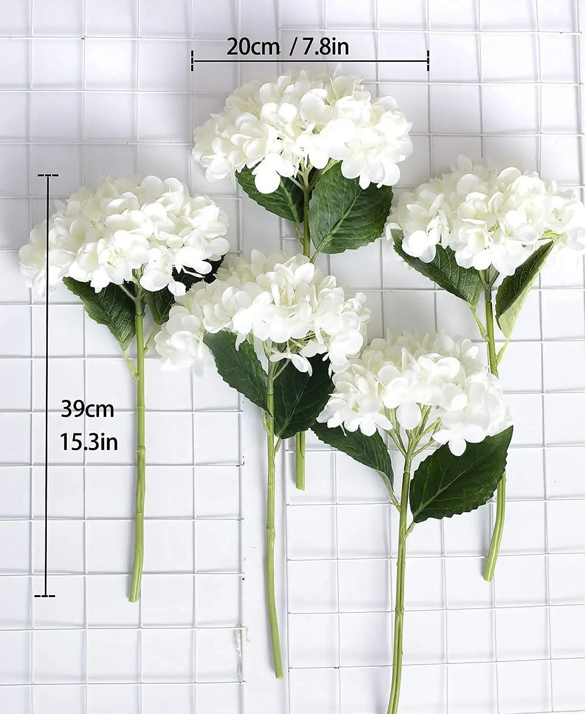 Artificial Hydrangea Stems for Wedding Centerpieces, Silk Flowers Bouquet, Home Decor, White, 15.4 ", 5Pcs