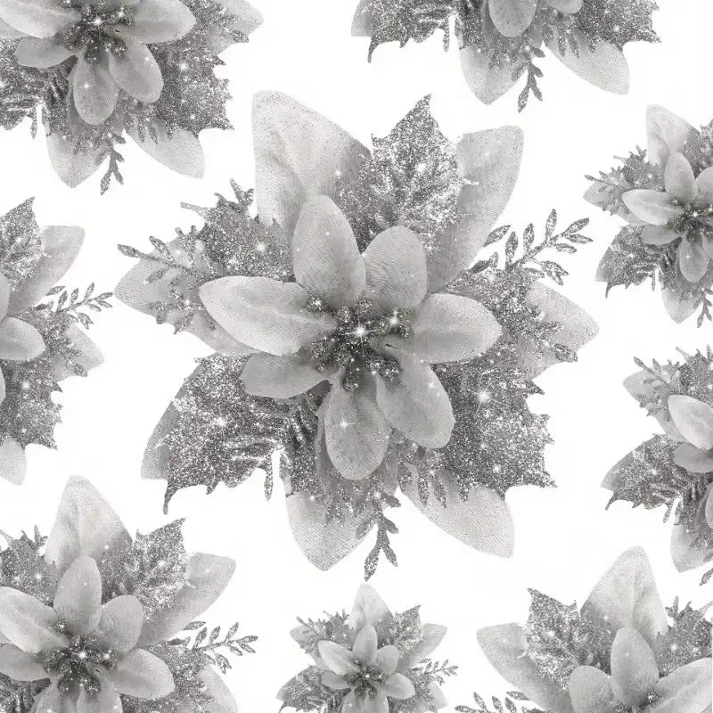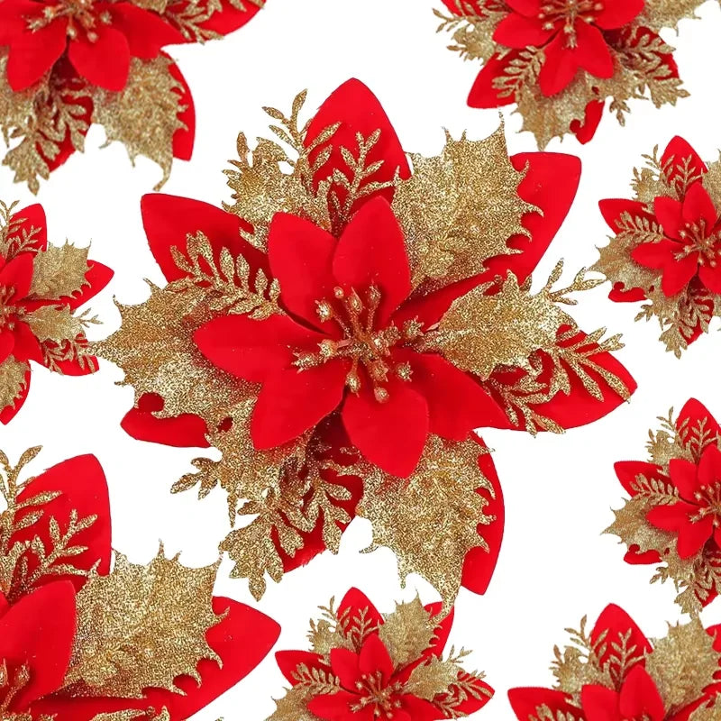 Artificial Three-Layer Hollow Christmas Flowers with Golden Powder, Christmas Decorations, Holiday Accessories, Christmas Trees
