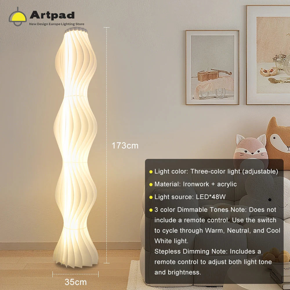 Artpad Nordic Modern Floor Lamp For Living Room Foyer Bedroom Luxury White Acrylic Grass Skirt Floor Light Remote Control