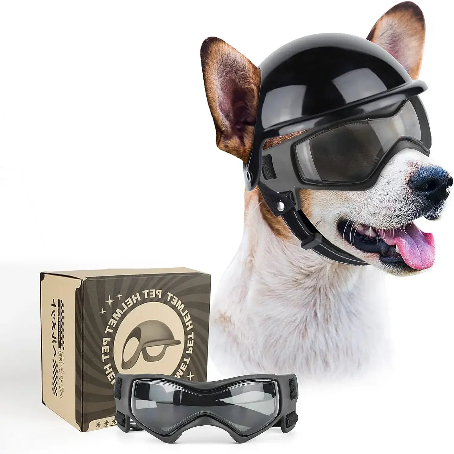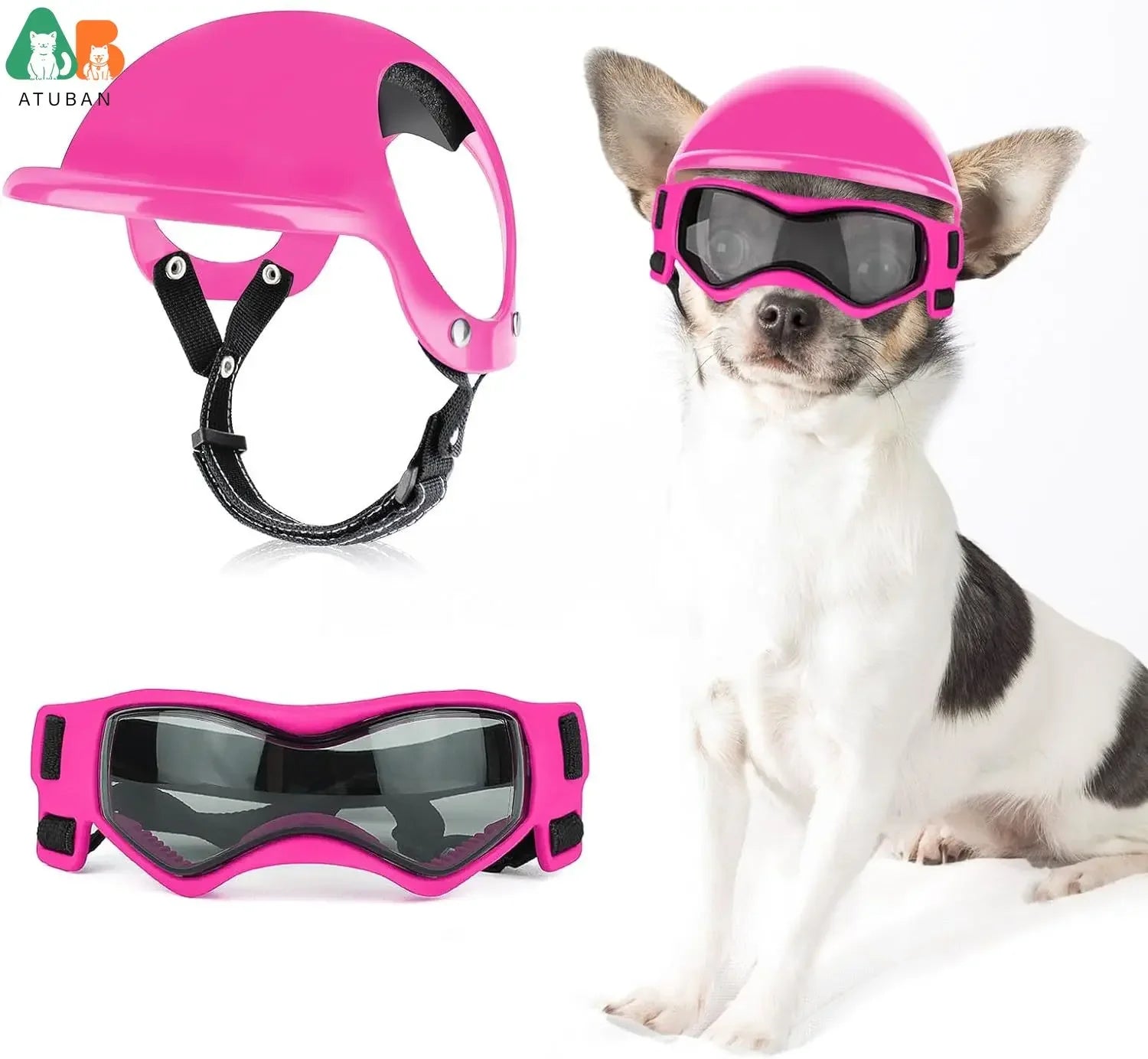 ATUBAN Dog Goggles for Small Dogs with Helmet,2pc Dog Sunglasses and Dog Helmet Set for Small Medium Dog Outdoor Driving Walking