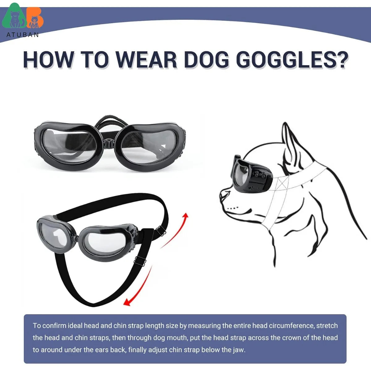 ATUBAN Dog Goggles Small Breed, Dog Sunglasses Small Breed Eye Protectie Goggles for Small Dogs Outdoor Riding Driving, Clear