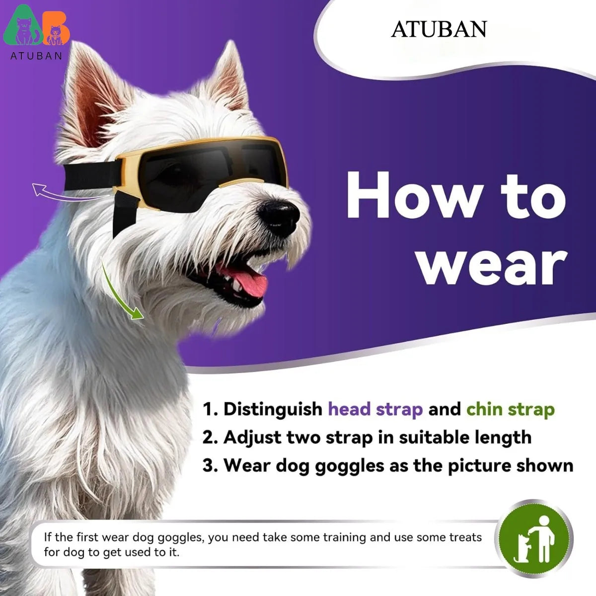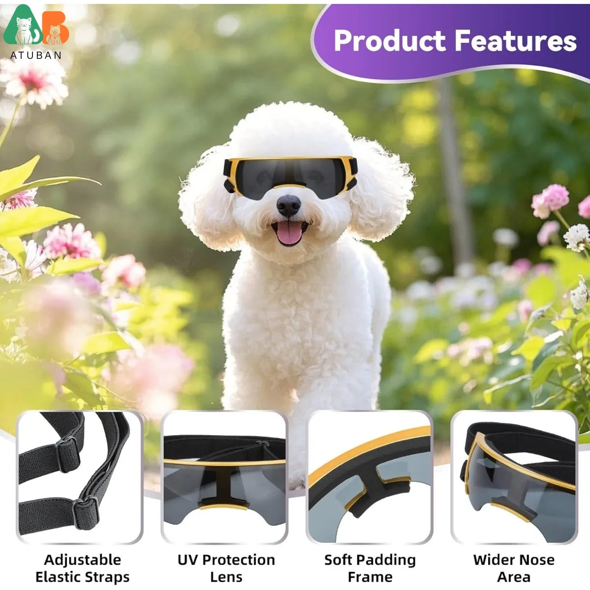 ATUBAN Dog Goggles Small Breed,Puppy Sunglasses UV Protection,Outdoor Ash Prevention,Driving Dog Eye Protection,Antifog Glasses