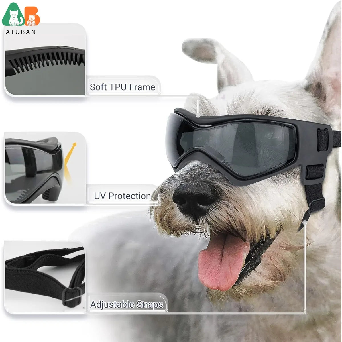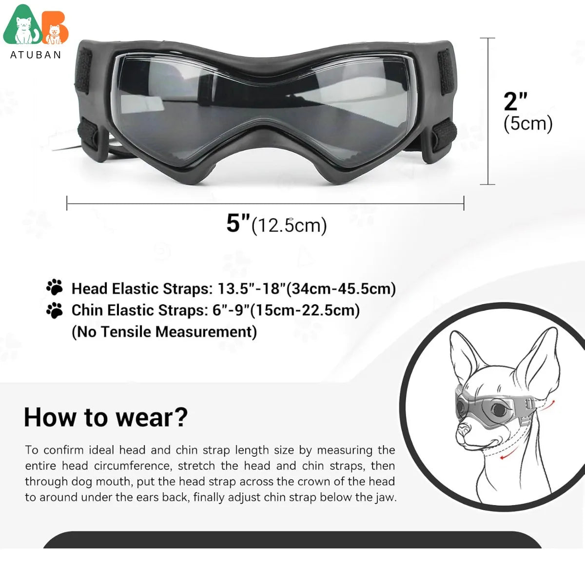 ATUBAN Dog Sunglasses,UV Protection Doggy Goggles Small to Medium Breeds, Outdoor Riding Dog Eye Protection,Anti-Fog Windproof