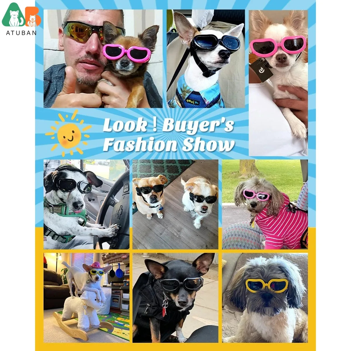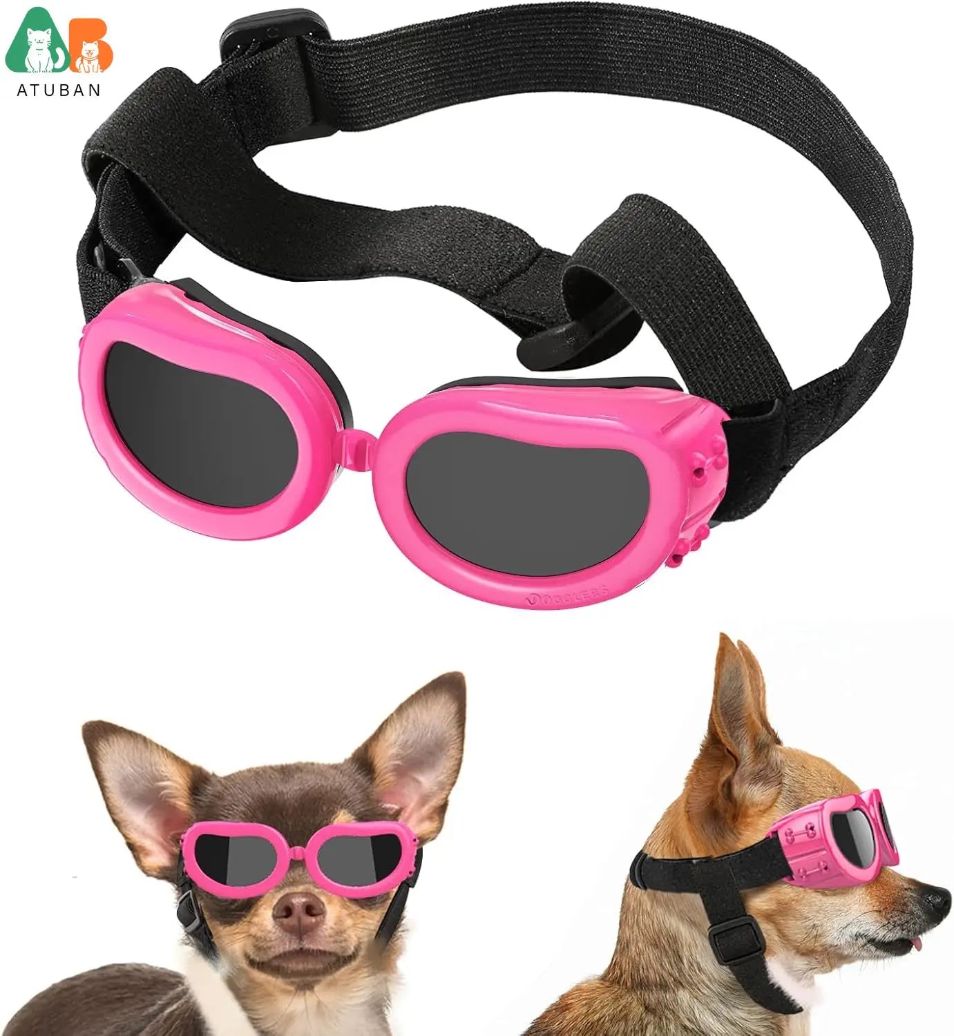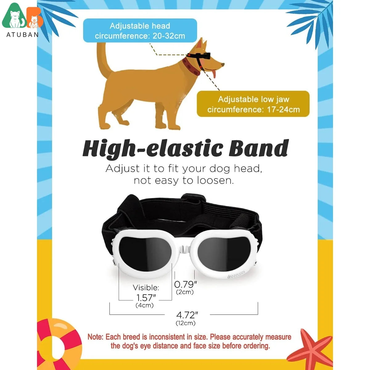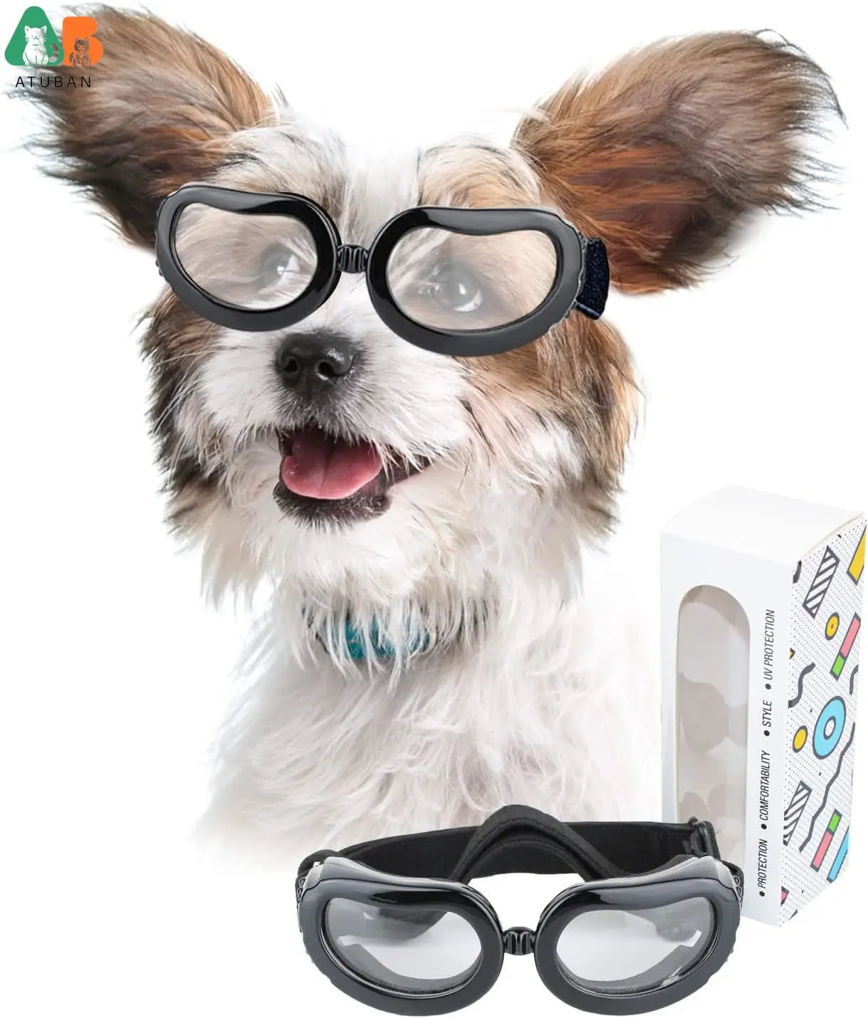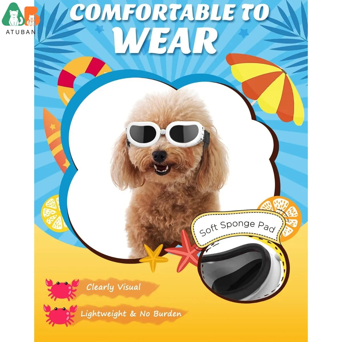 ATUBAN Small Breed Dog Goggles - UV Protection Sunglasses with Adjustable Strap, Windproof, Anti-Fog for Small Dogs, White