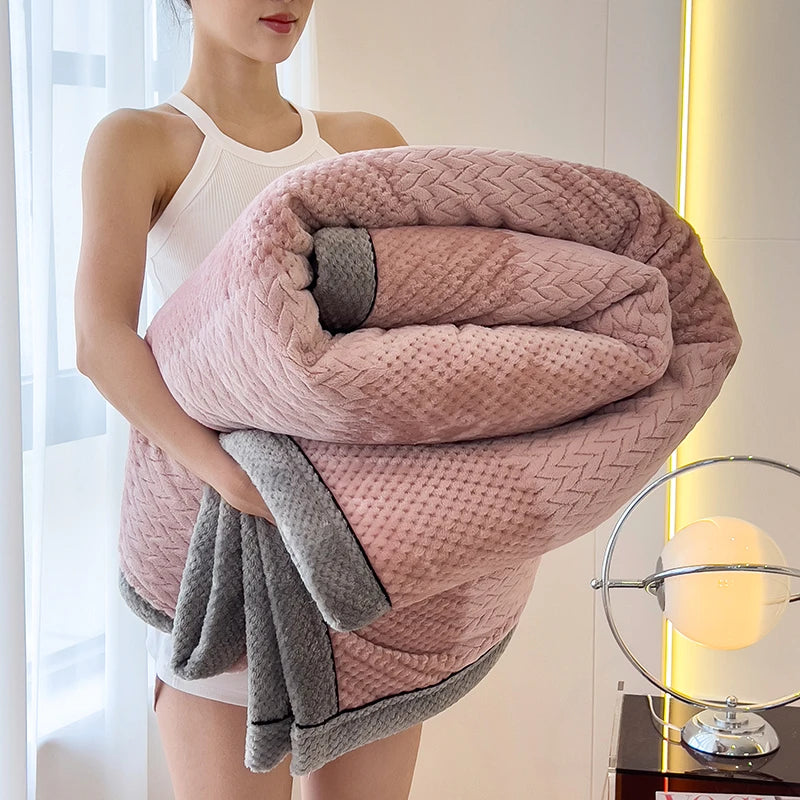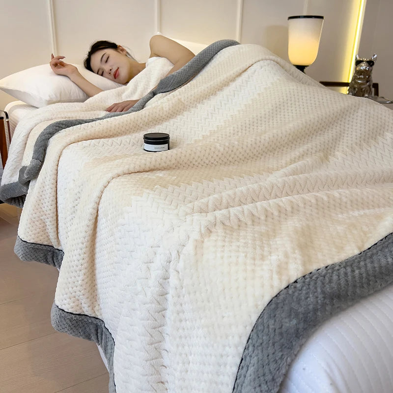 Autumn Winter Warm Double Layer Fleece Blankets for Bed Grade A Skin-friendly Soft Throws Blanket Soft Bedroom Double Bedspread