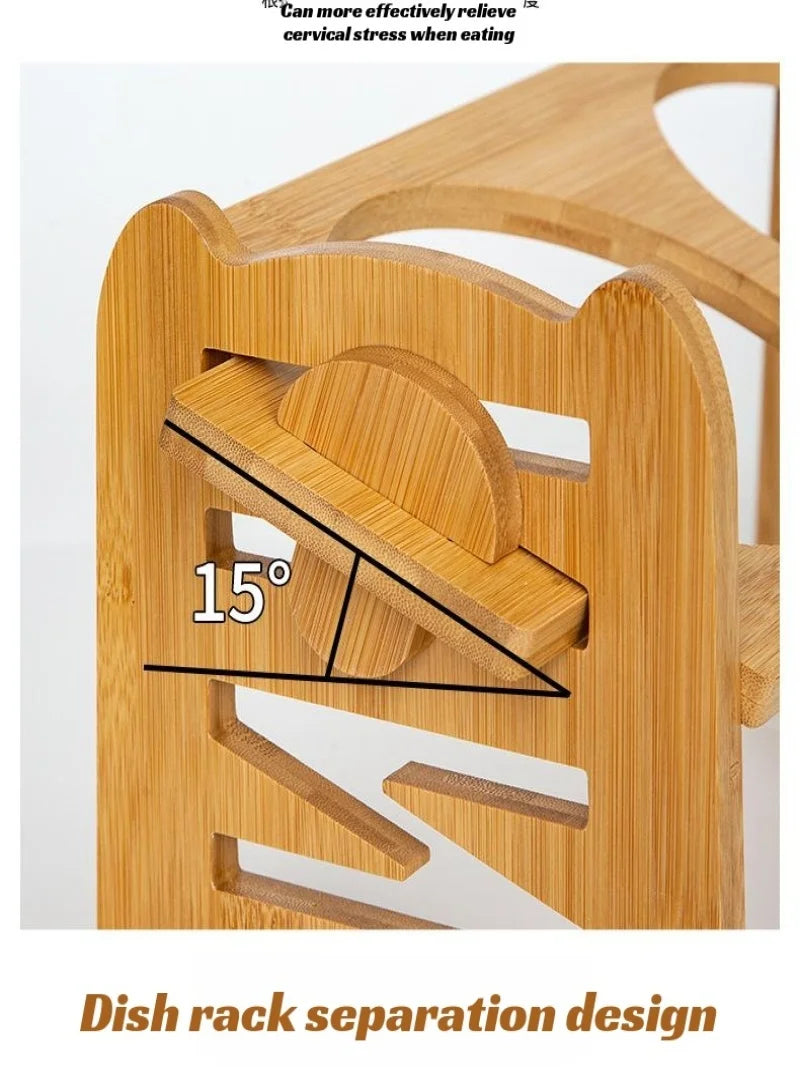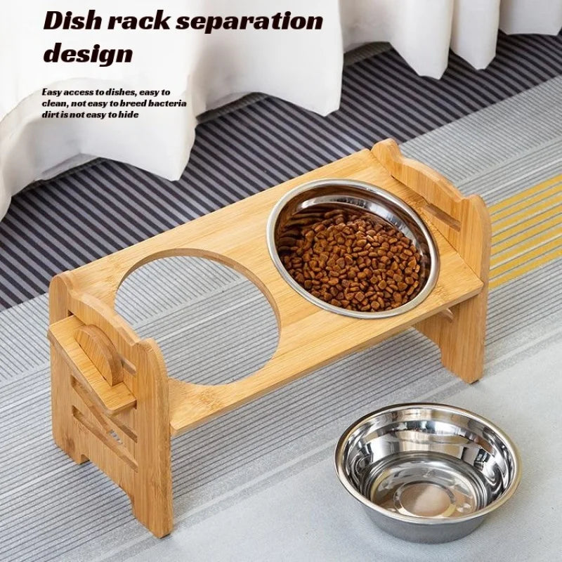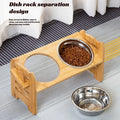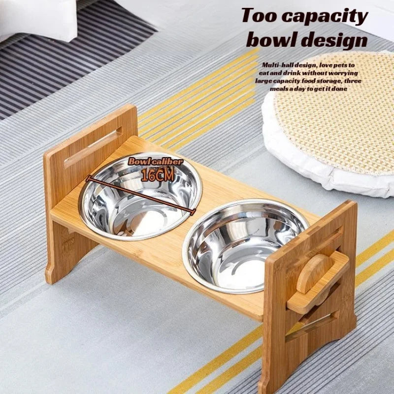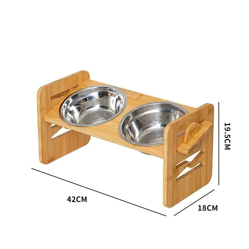 Bamboo Tilted Adjustable Pet Dog Food Double Bowl Stand Cat Meal Rack Feeder Pet Feeding with Stainless Steel Bowl Pet Accessori