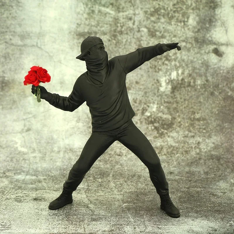 Banksy Statues Throw Flower Boy Modern Banksy Crafts Living Room Decoratio Resin Sculpture Art Designer Figurinesn House Decor