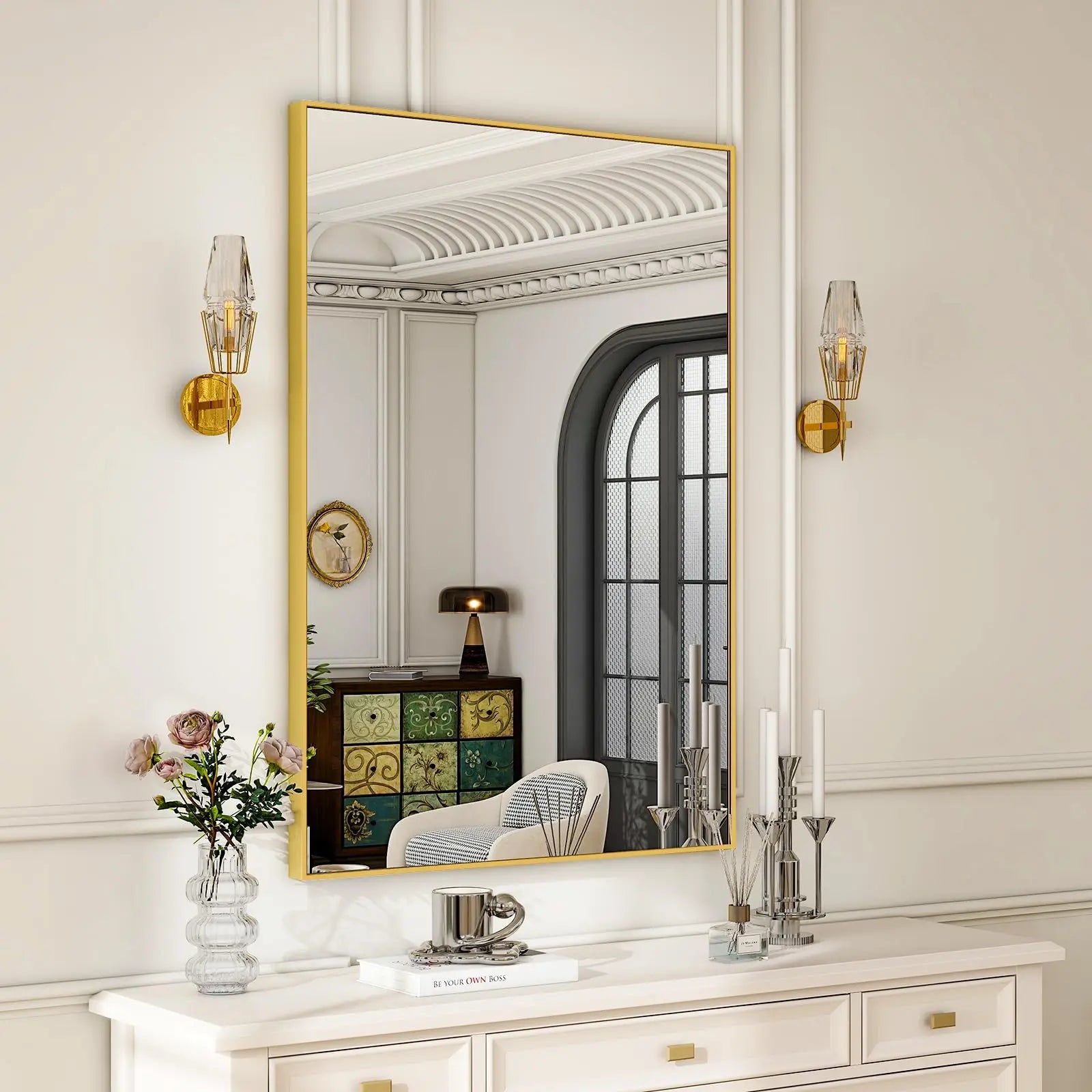 Bathroom Mirror for Wall, 20x28 Inch Rectangle Mirrors with Metal Frame, Modern Vanity Wall Mirror Decor for Entryway Hangs