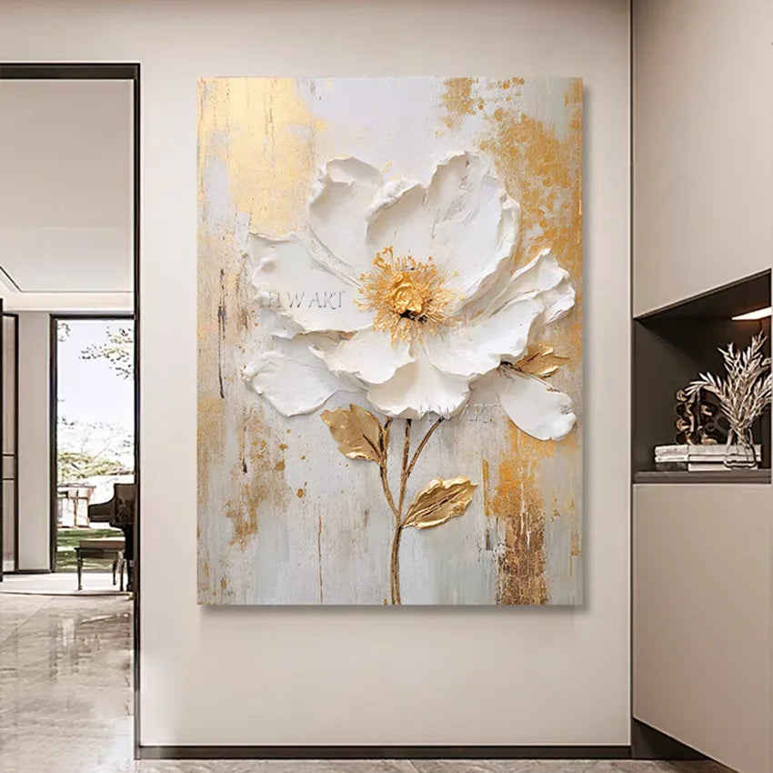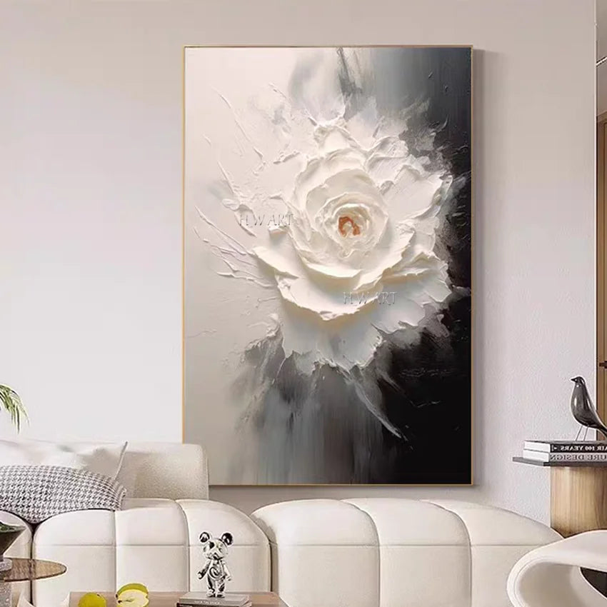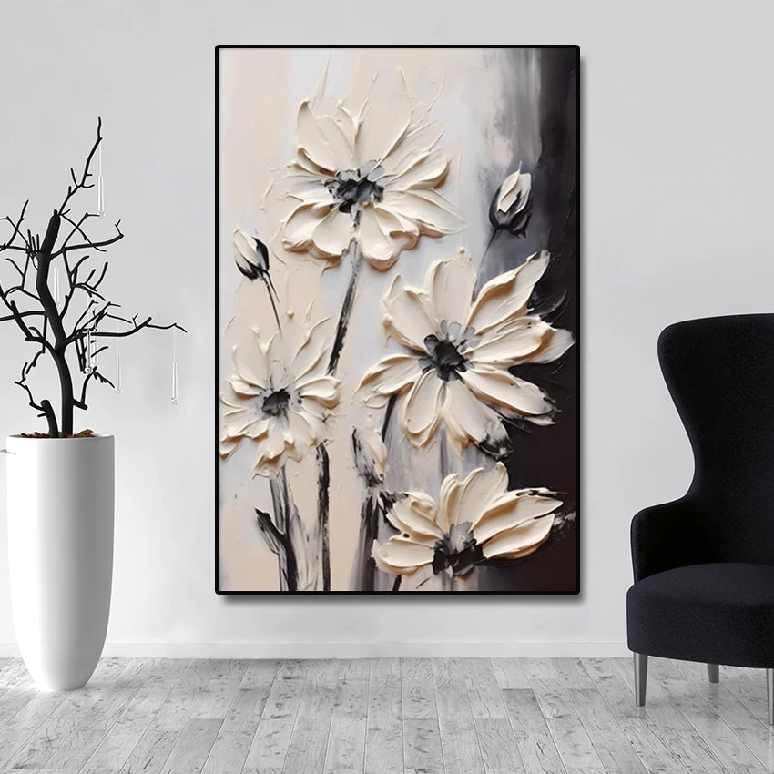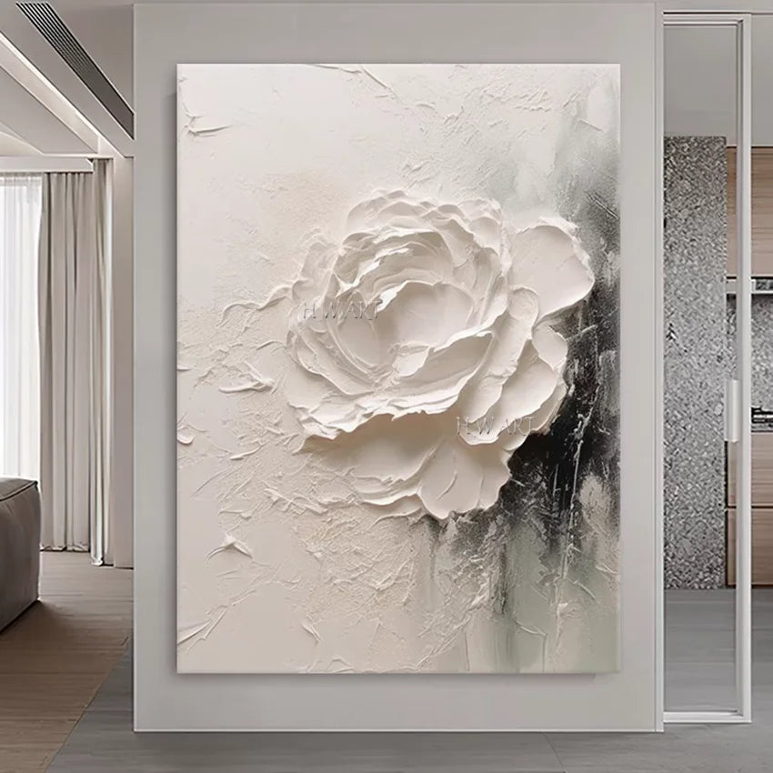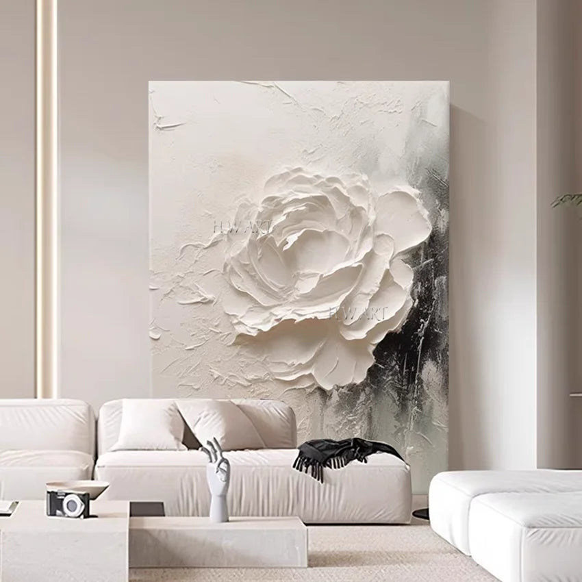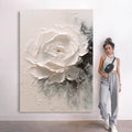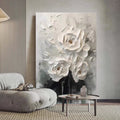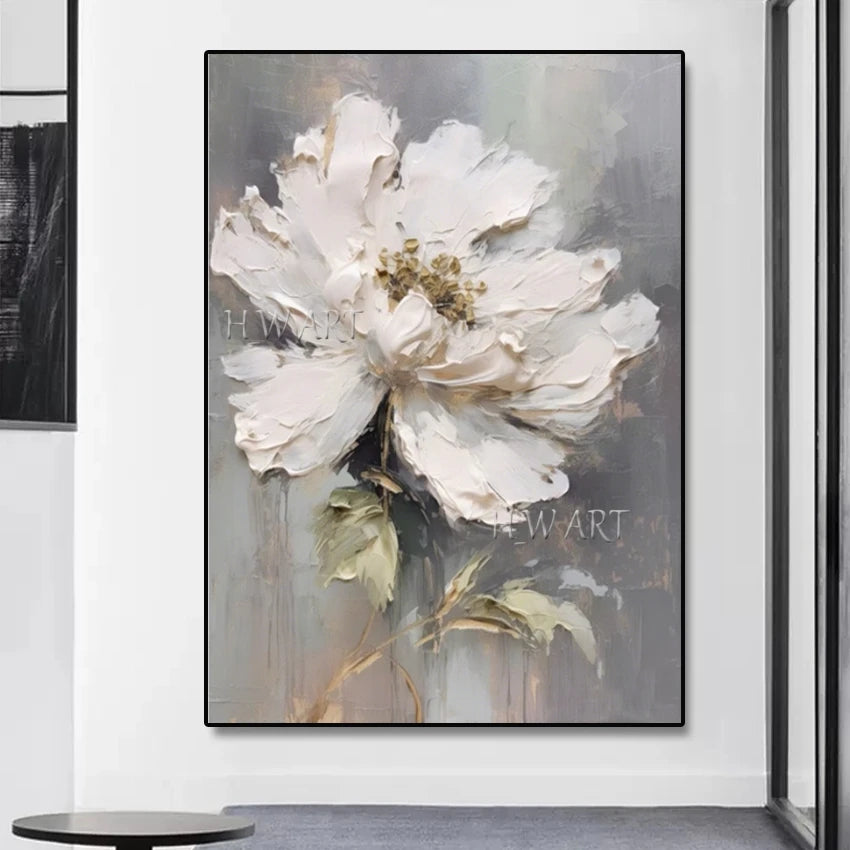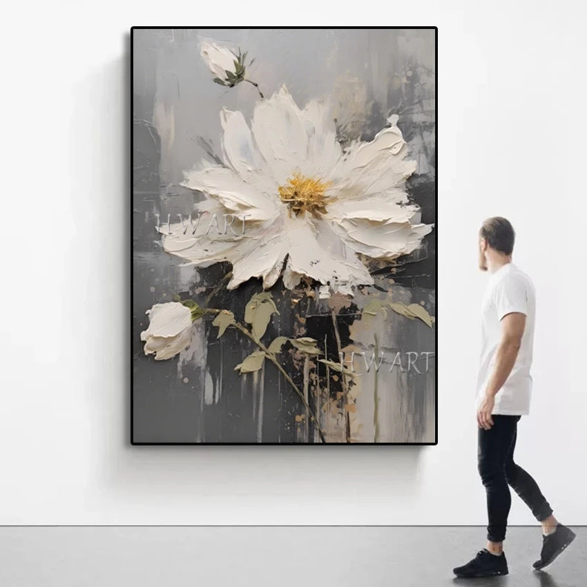 Beautiful Art Canvas Abstract Floral Wall, No Framed Artwork, Natural Plant Picture, White Thick Acrylic Flowers Oil Paintings