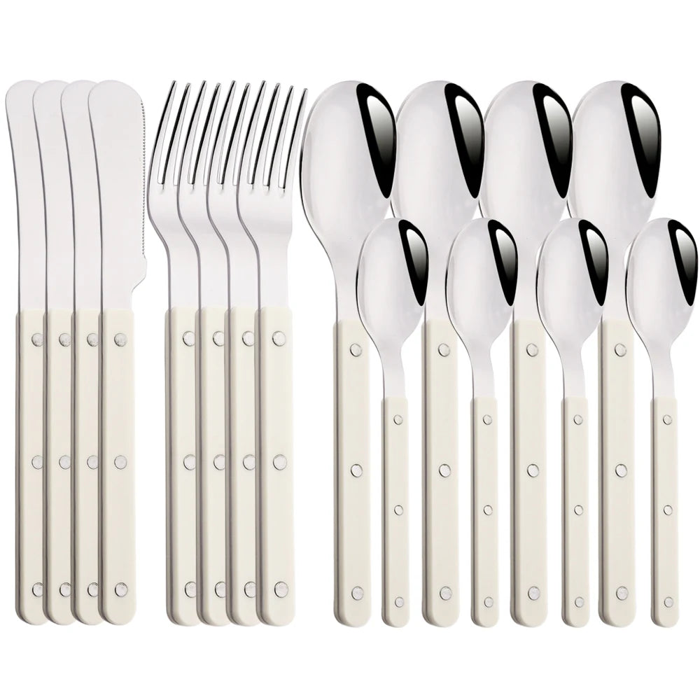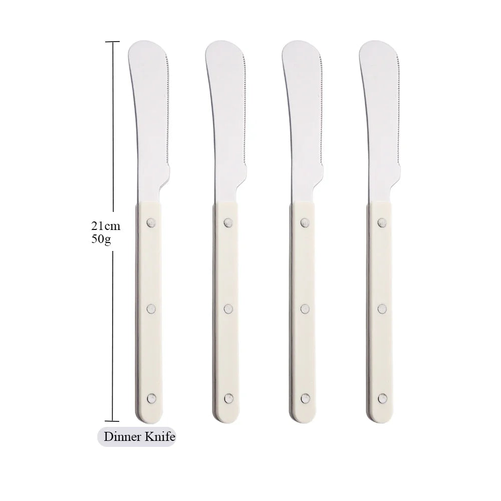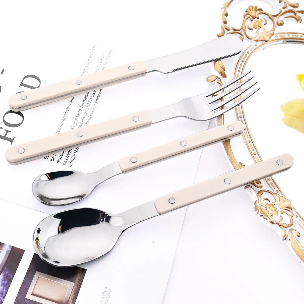 Beige Silver 4/16Pcs Dinnerware Acrylic Handle Knife Fork Spoon Set Stainless Steels Cutlery Set Western Dinner Kitchen Flatware