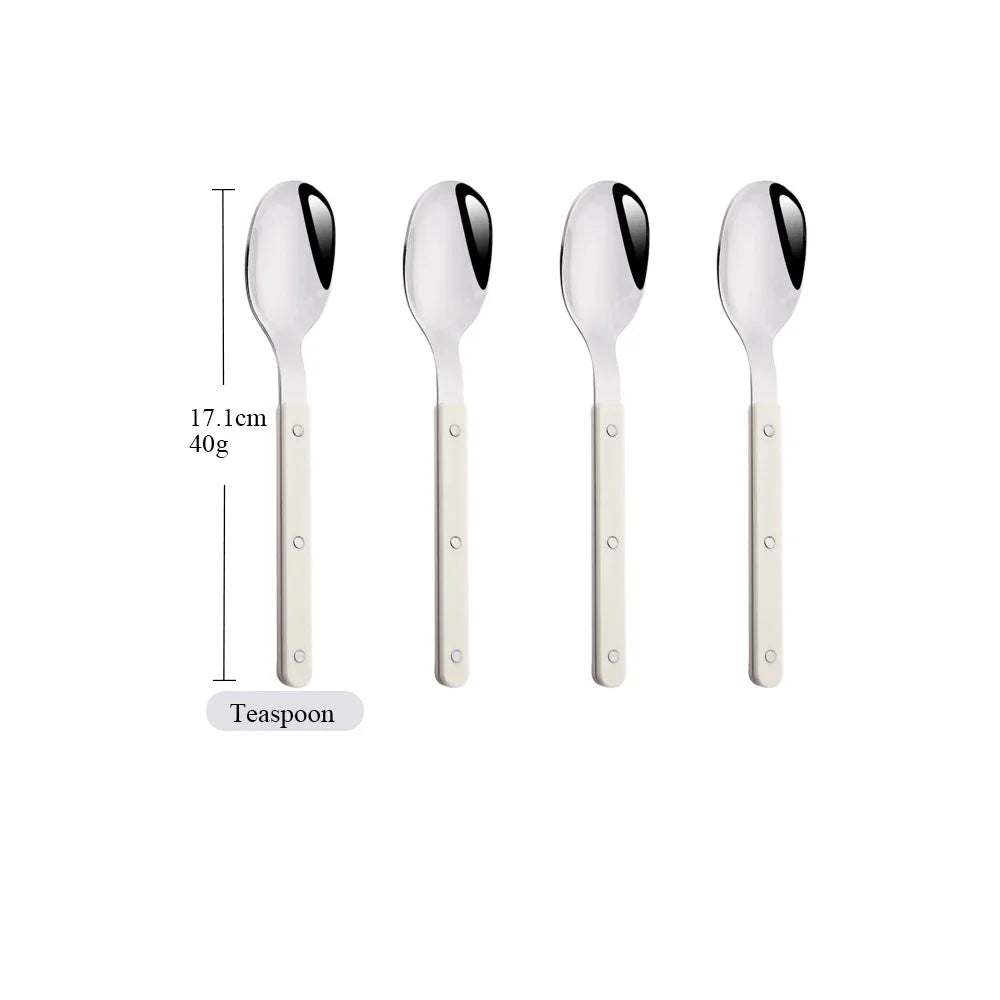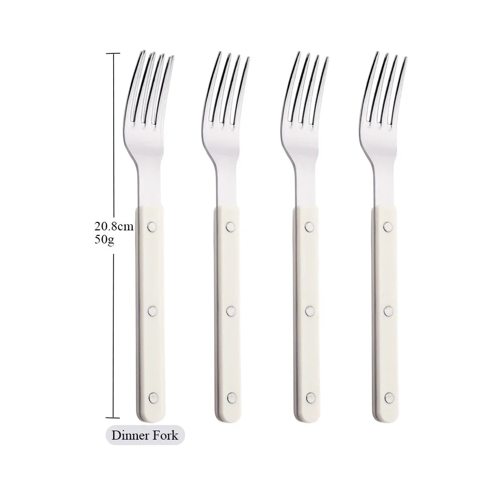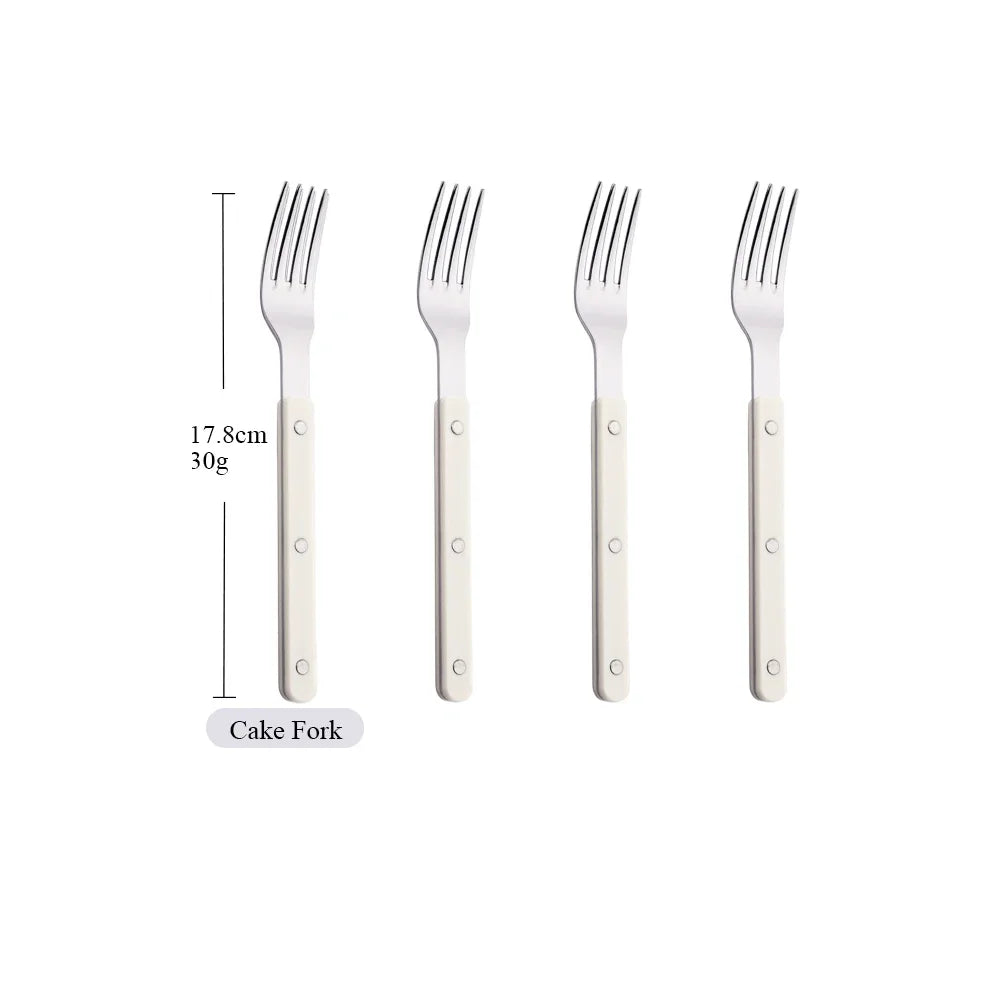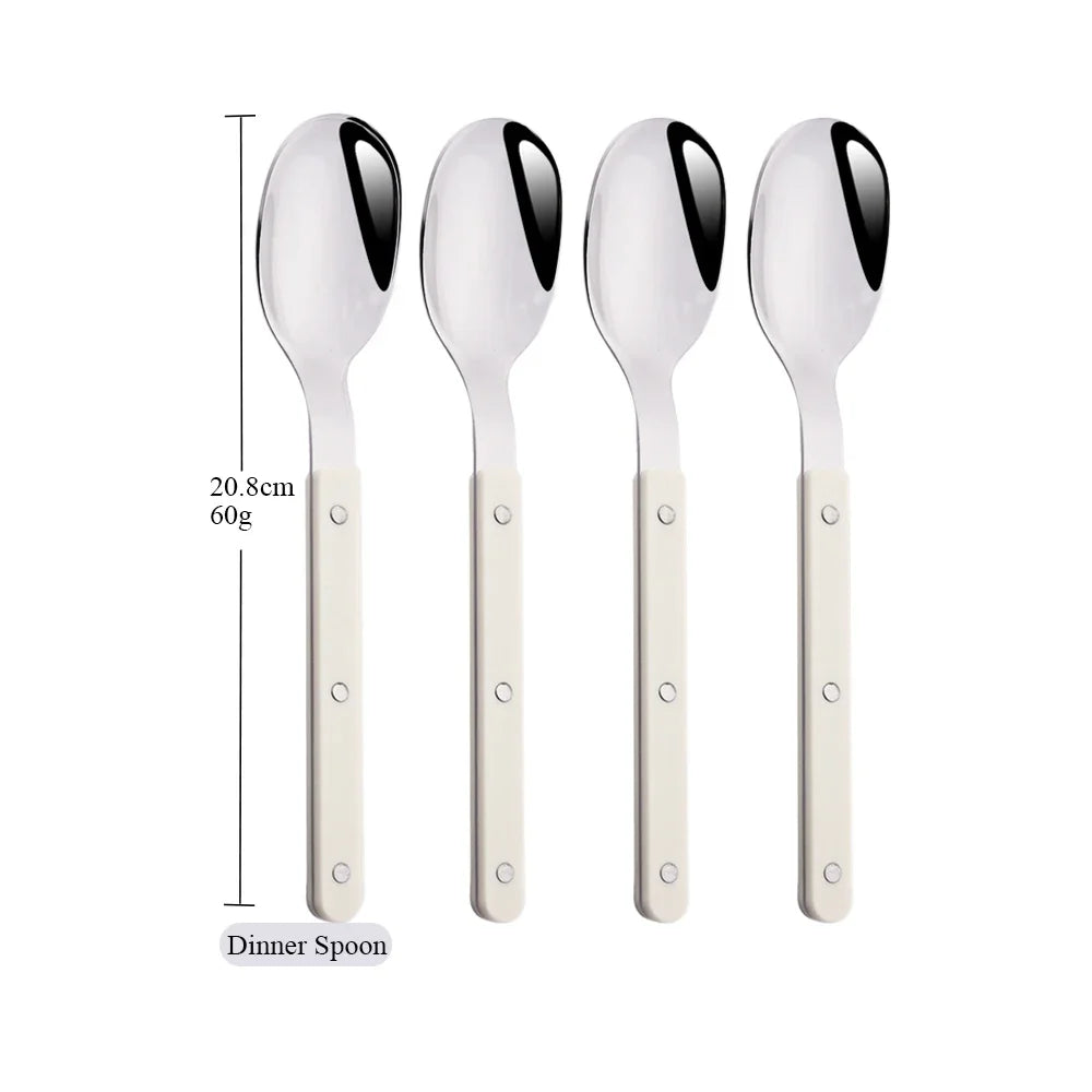 Beige Silver 4/16Pcs Dinnerware Acrylic Handle Knife Fork Spoon Set Stainless Steels Cutlery Set Western Dinner Kitchen Flatware