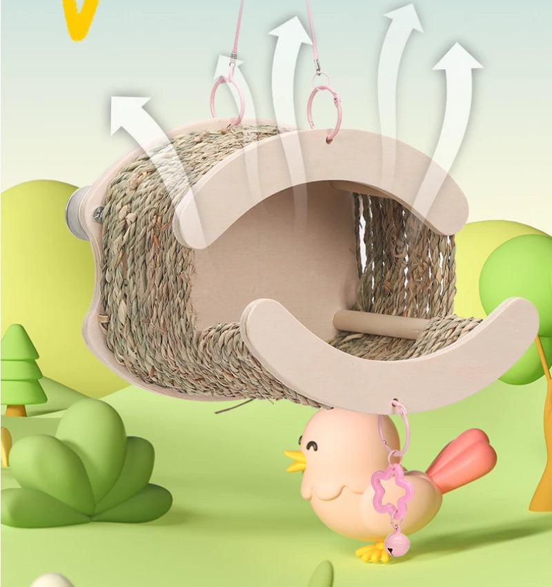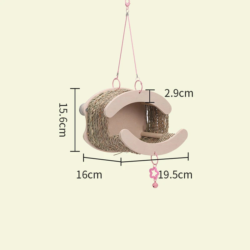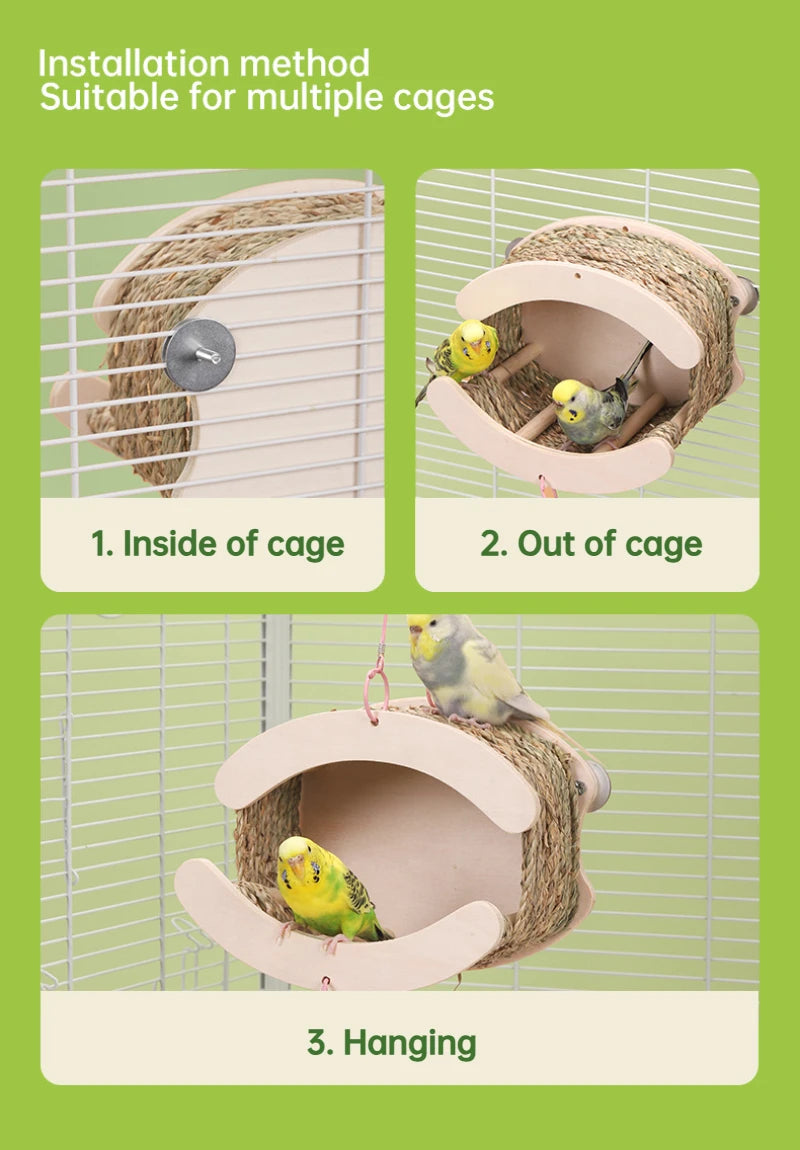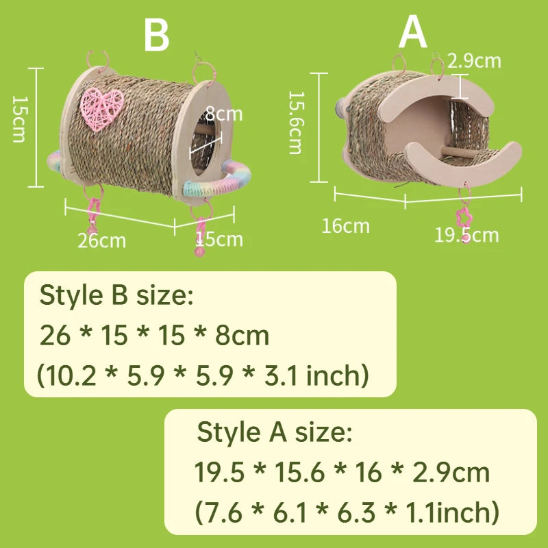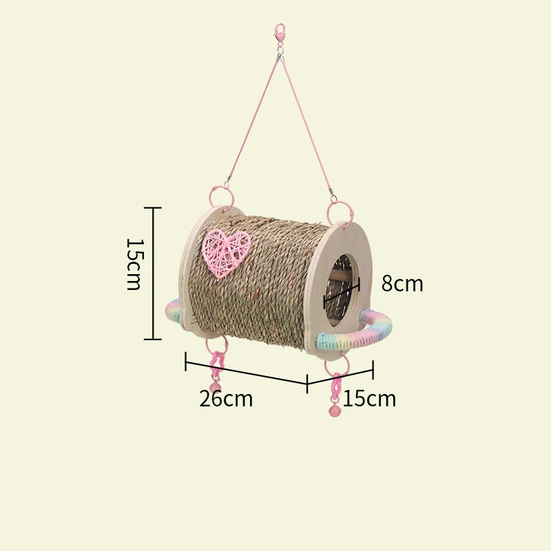 Bird House Tent with Hammock Swing Bird Nest Grass Bird Hut Parrot Tunnel Hideout Pet Cage Accessory for Parrots and Hamsters