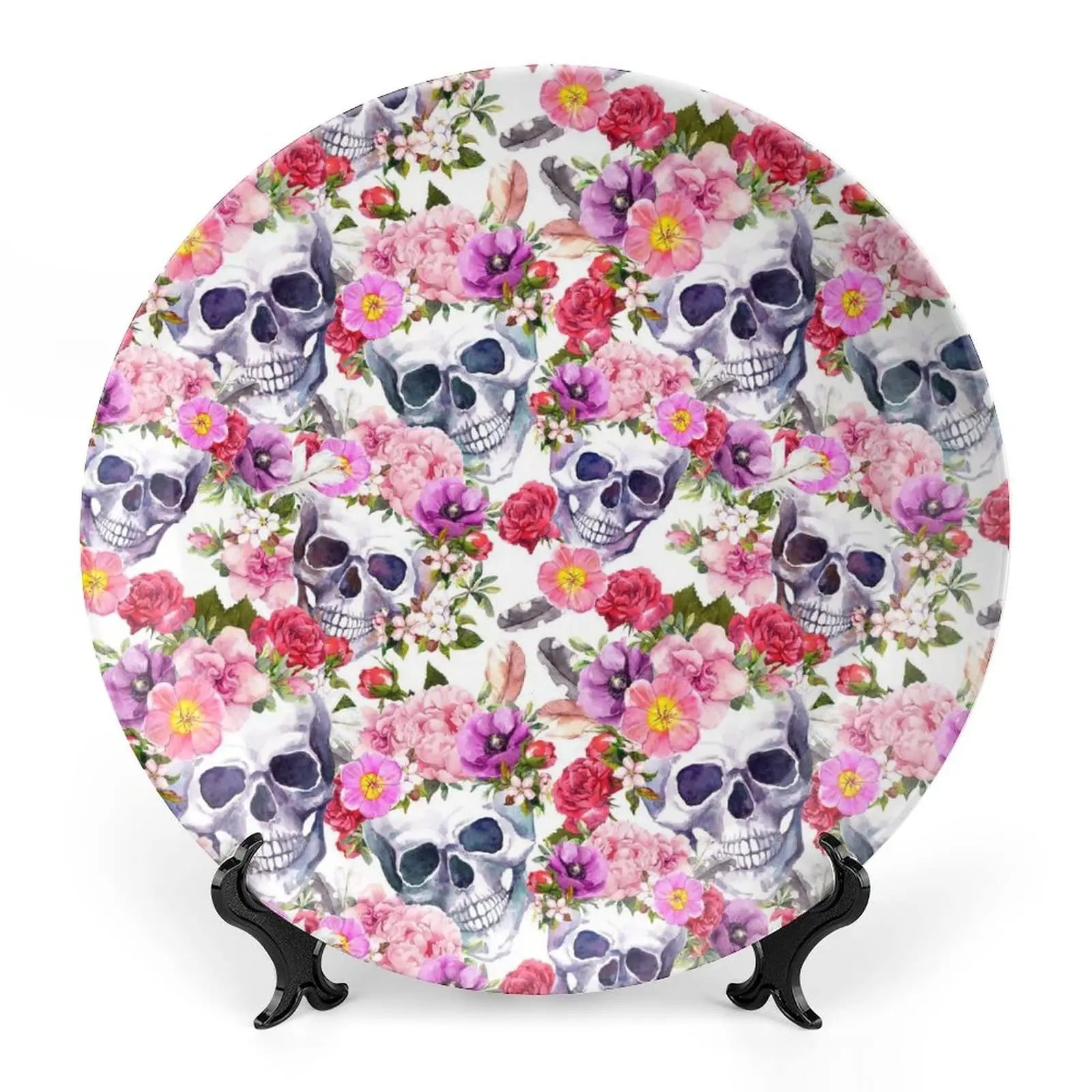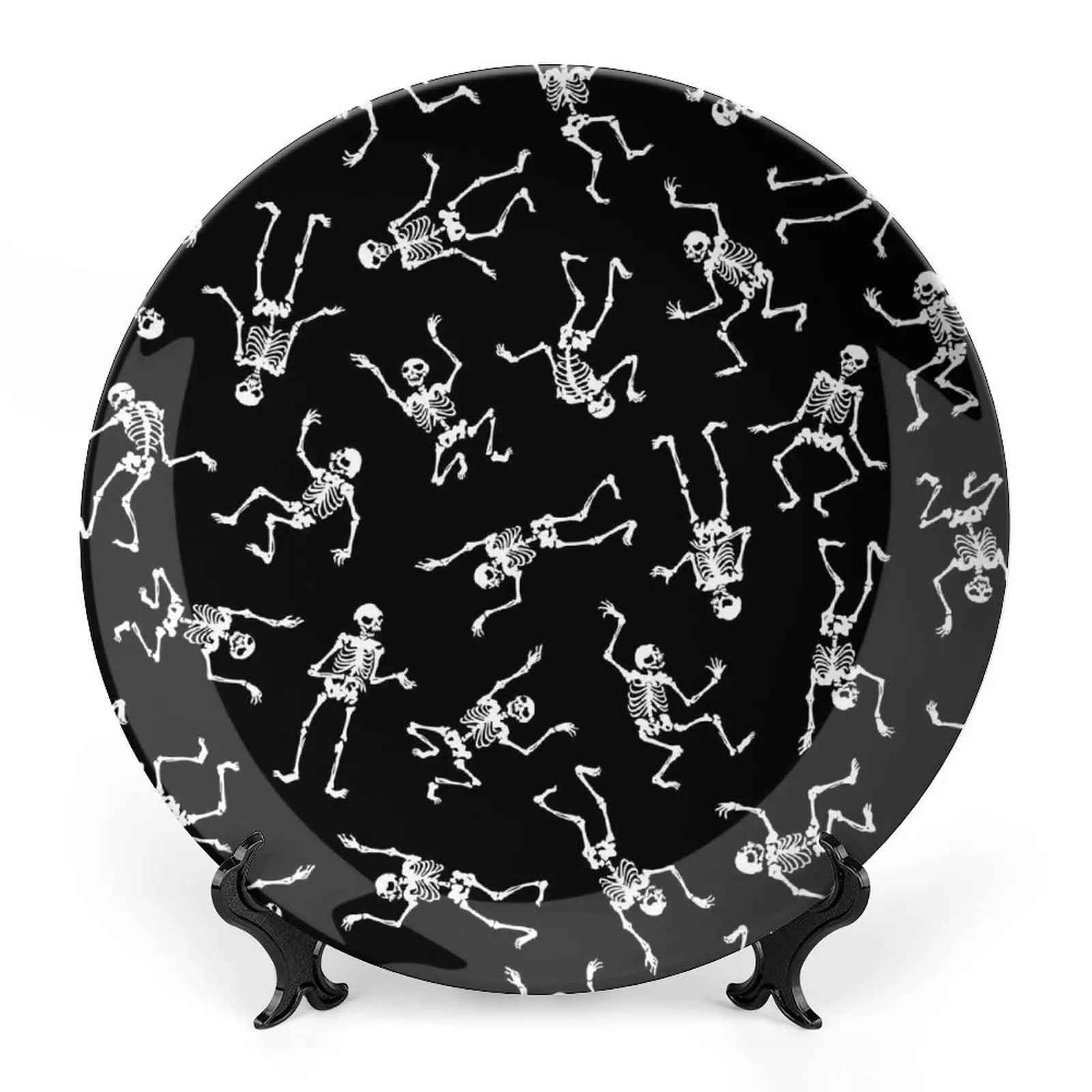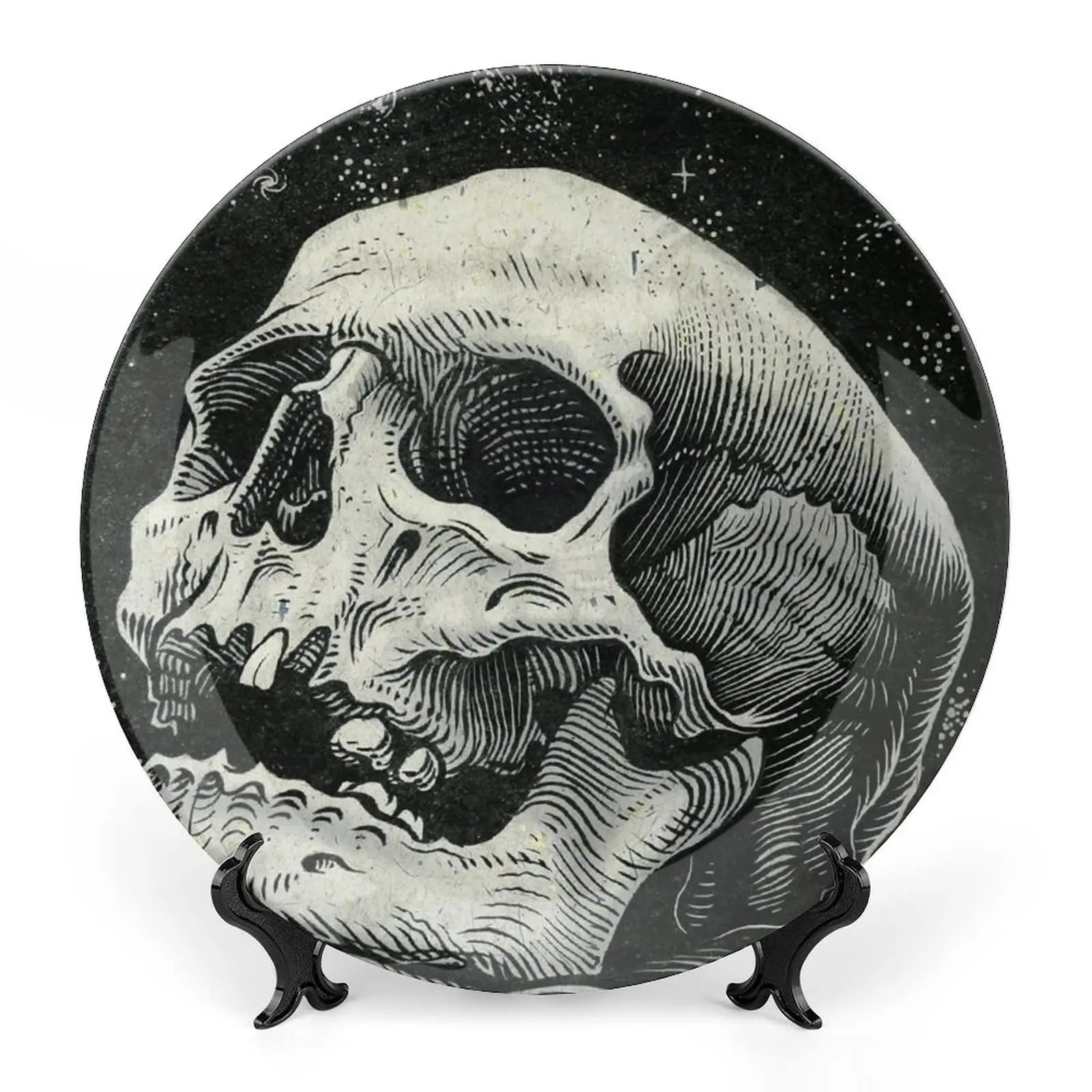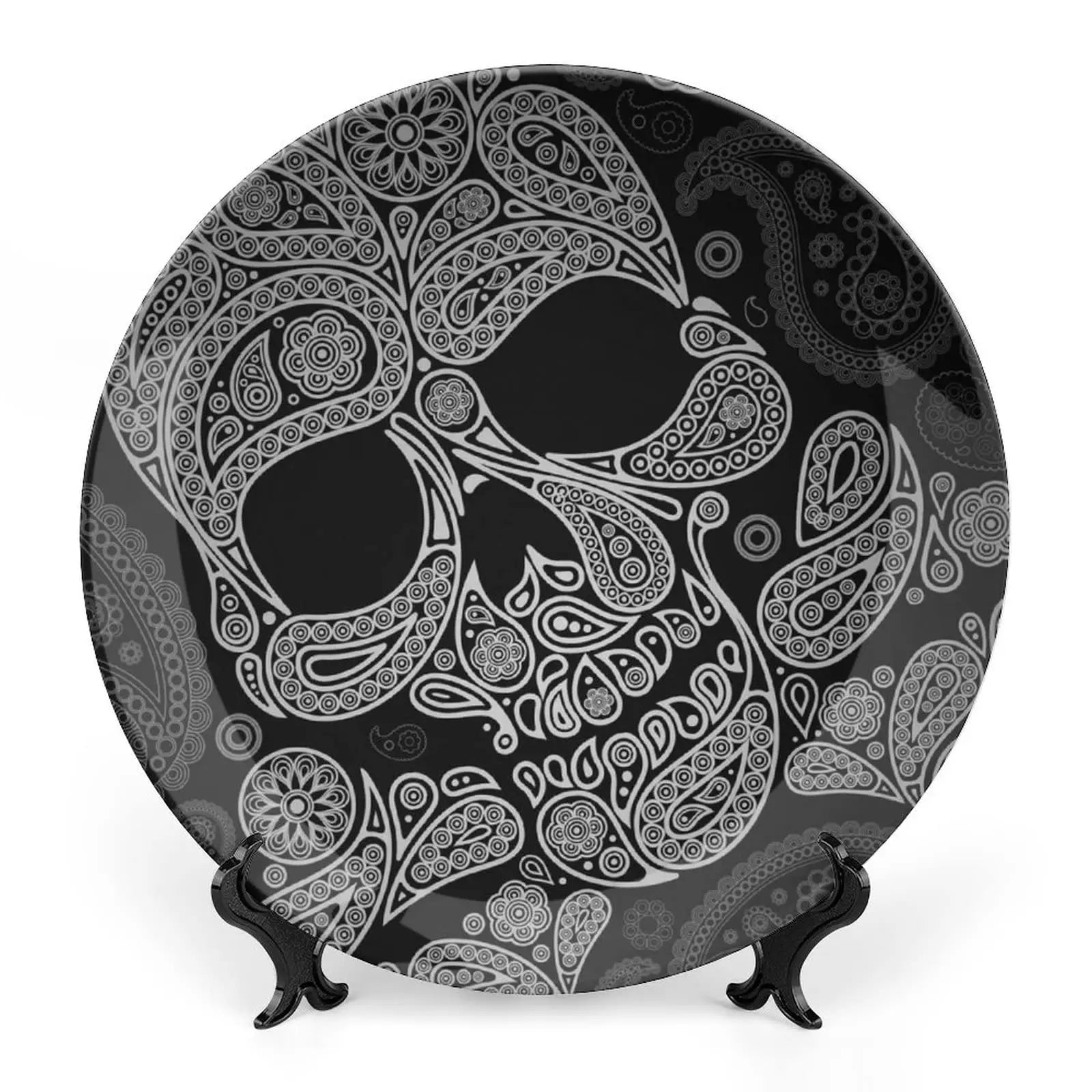 Black and White Skulls Ceramic Bone China Decorative Plate with Stand Home Wobble-Plate Dessert Plates Household Plate Gift