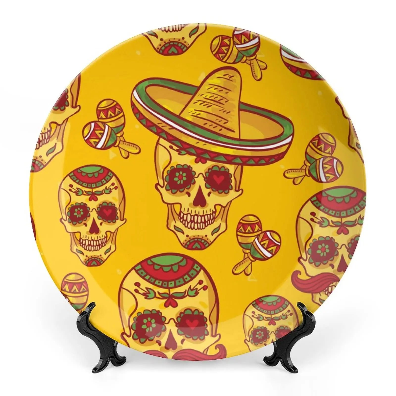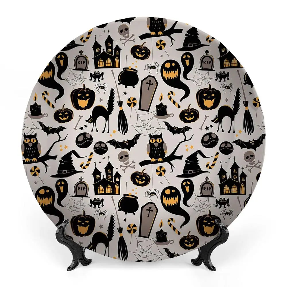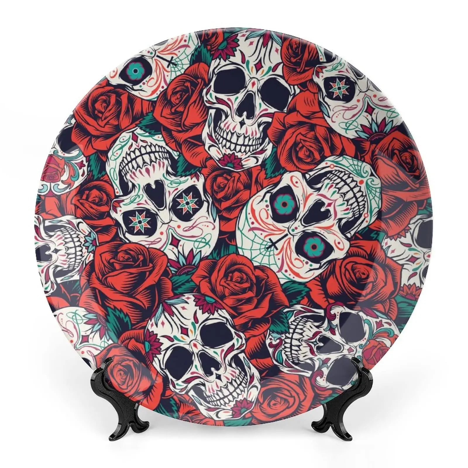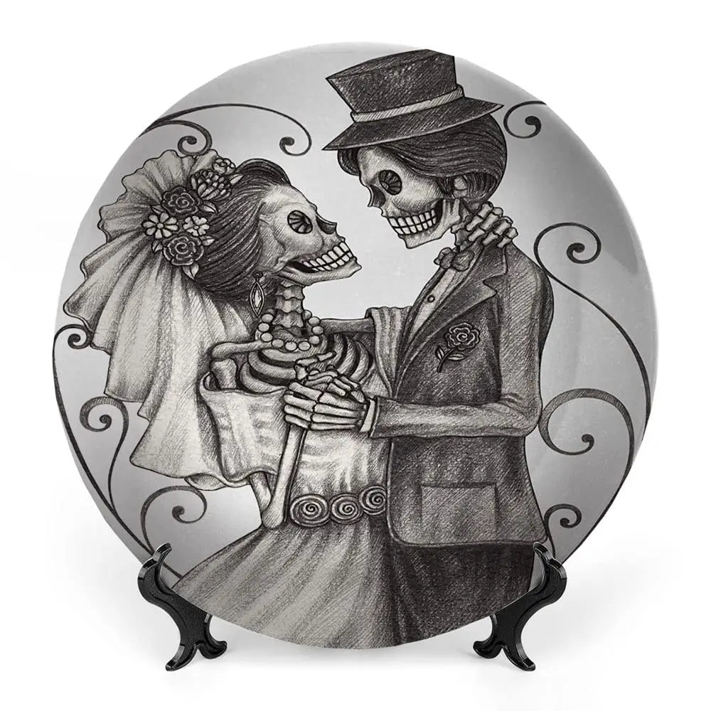 Black and White Skulls Ceramic Bone China Decorative Plate with Stand Home Wobble-Plate Dessert Plates Household Plate Gift