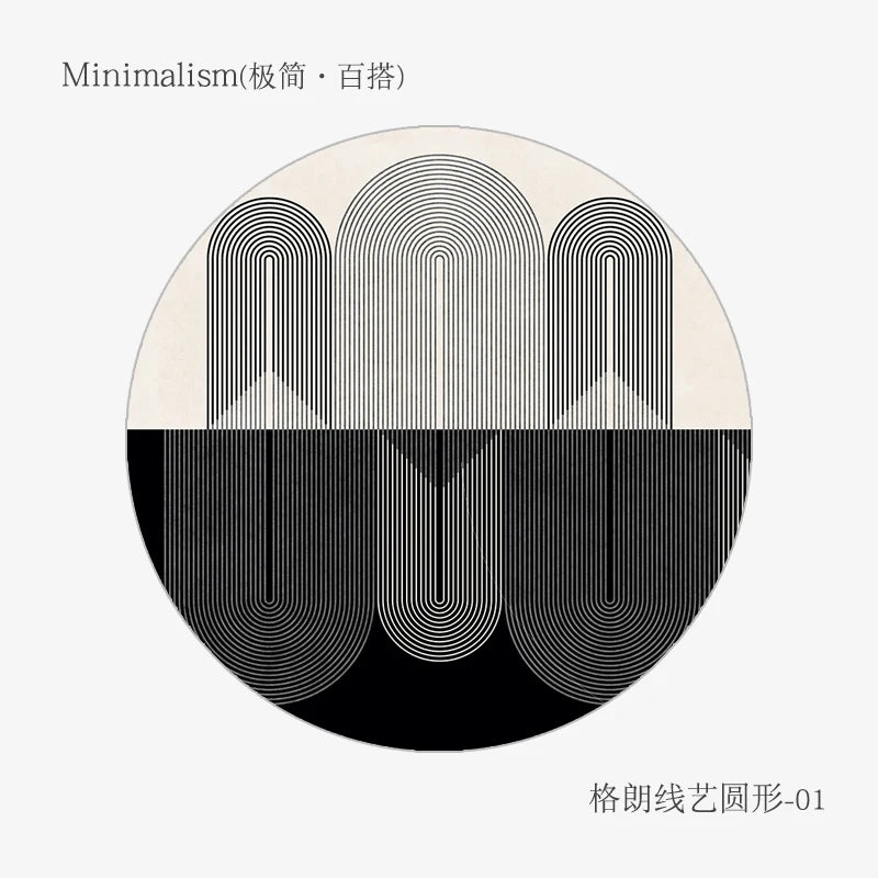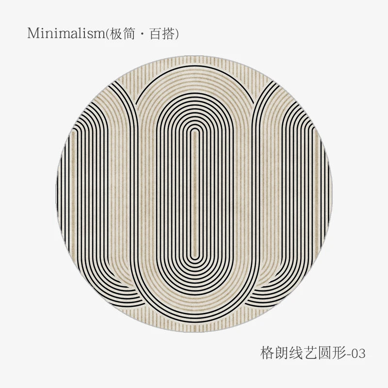 Black White Line Cloakroom Rug Modern Nordic Bedroom Decor Carpet Minimalist Round Carpets for Living Room Soft Fluffy Plush Mat