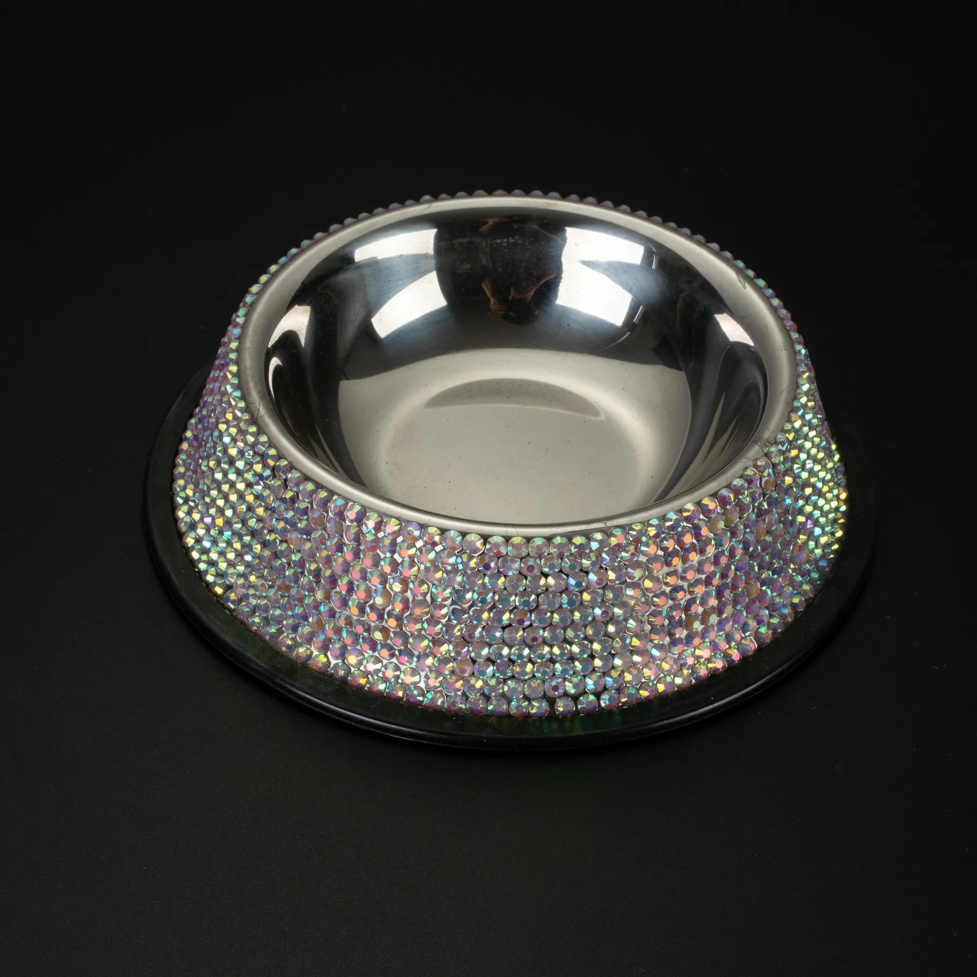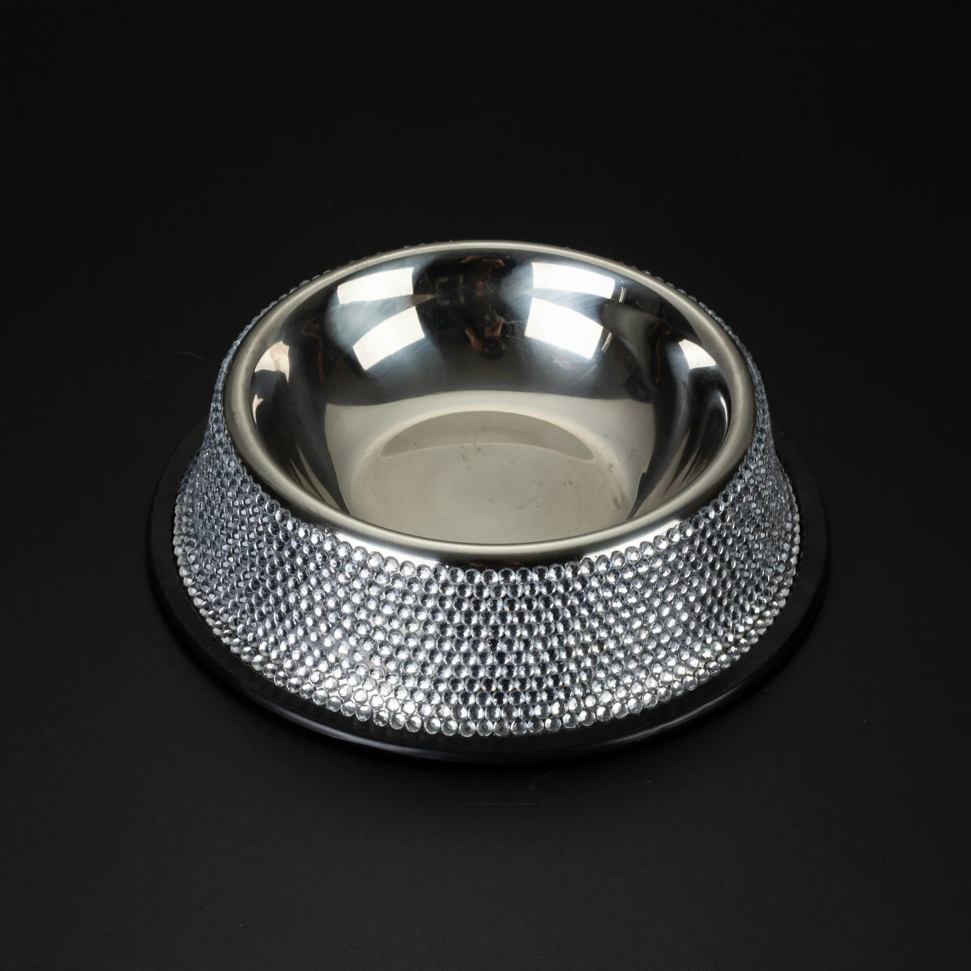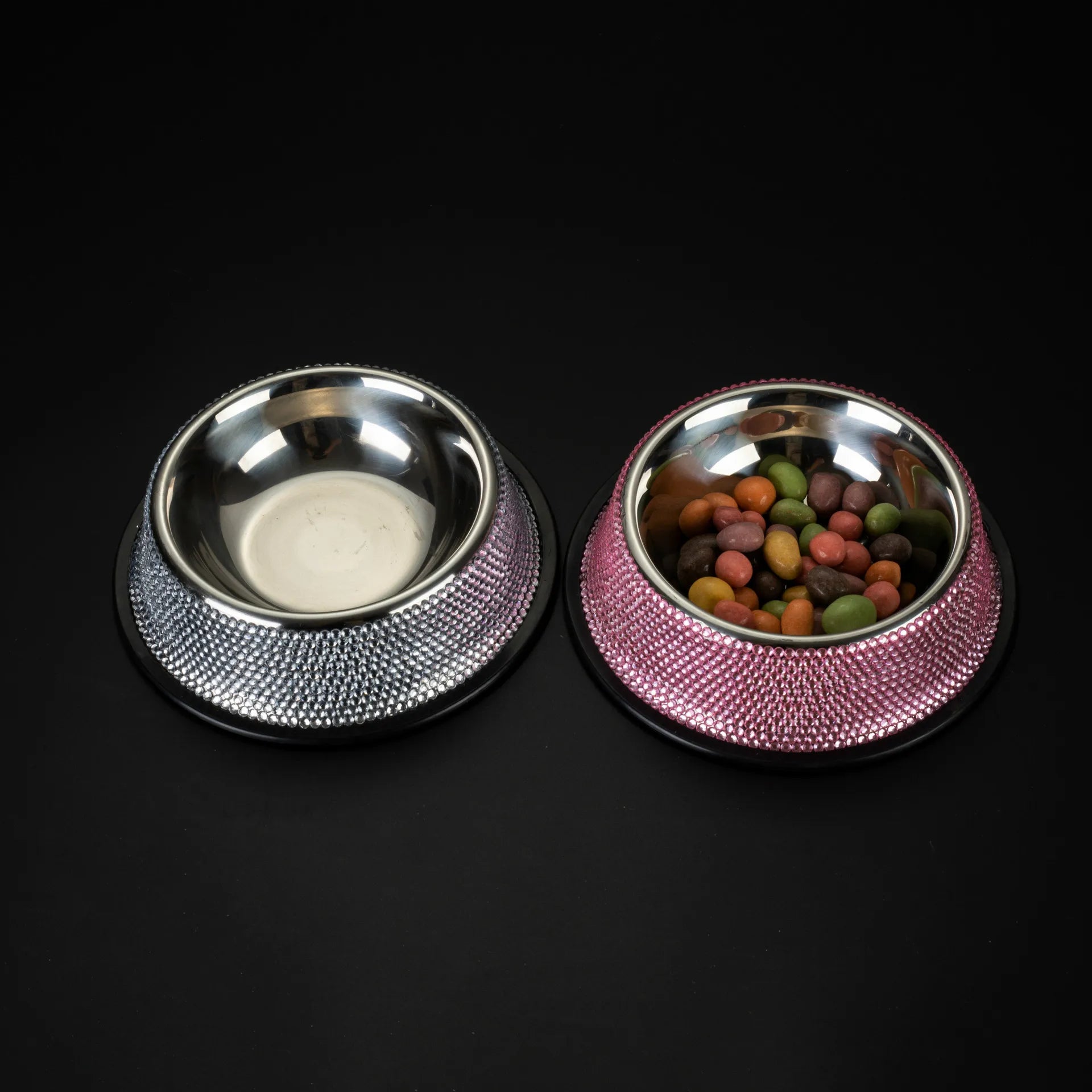 Bling Diamond Stainless Steel Dog Bowl Cat Bowl Pet Drinking Bowl Feeder Sparkling Rhinestone Cat Feeding Bowls 18CM Diameter