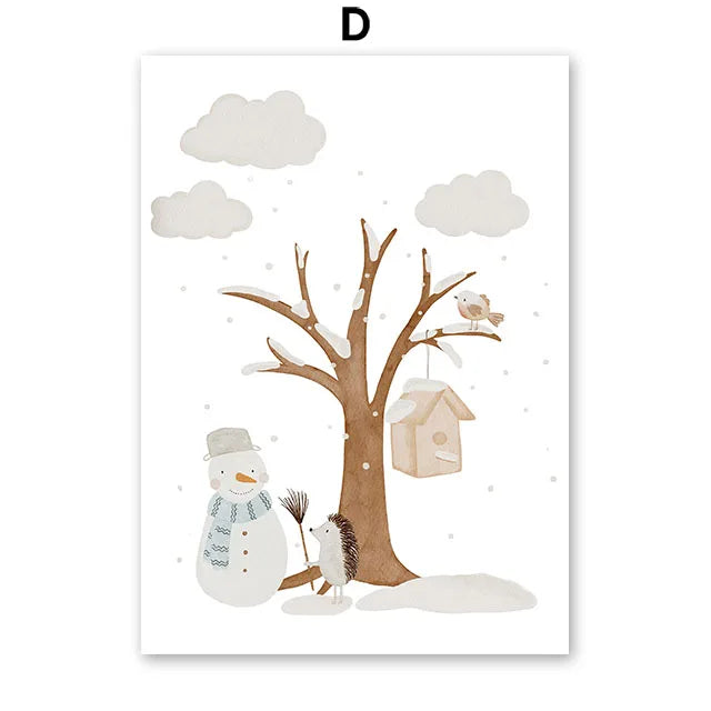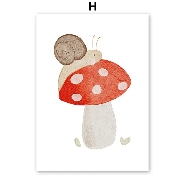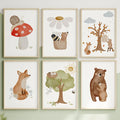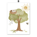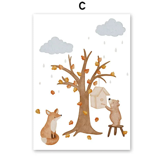Boho Bear Fox Bird Tree Cabin Mushroom Flower Wall Art Canvas Painting Cartoon Posters And Prints Pictures Baby Kids Room Decor