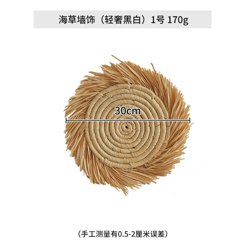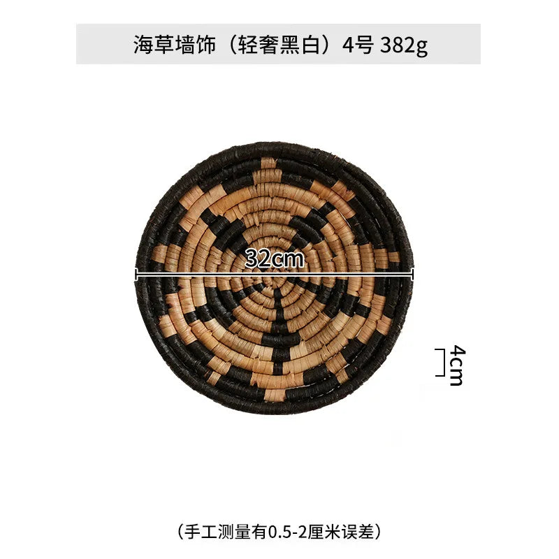 Boho Chic Handcrafted Seagrass Wall Baskets, Rattan Woven Round Bohemian Decor for Home,Farmhouse-Featherless,Versatile Use