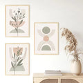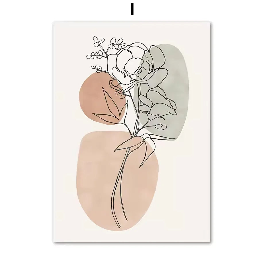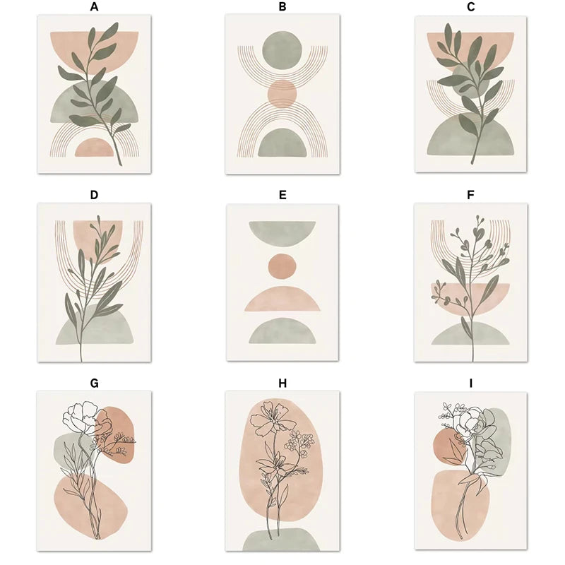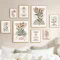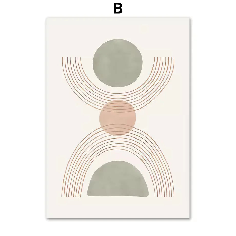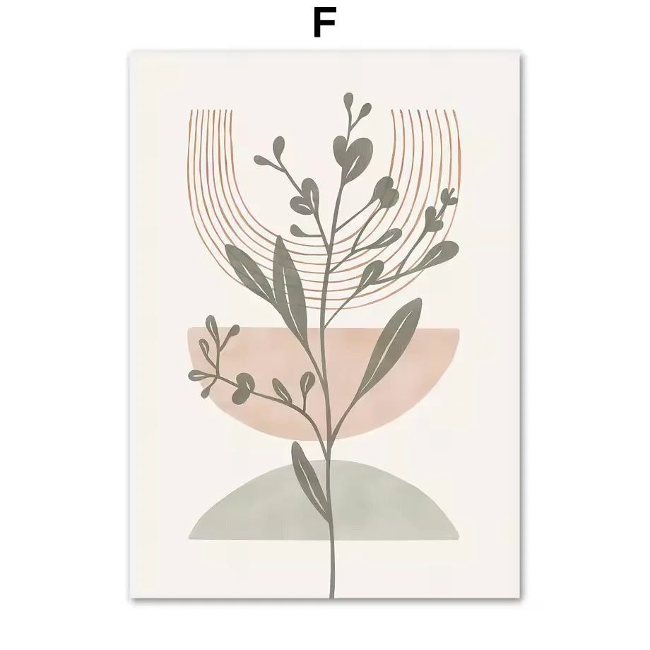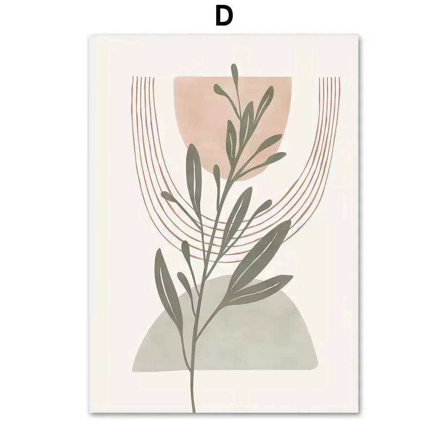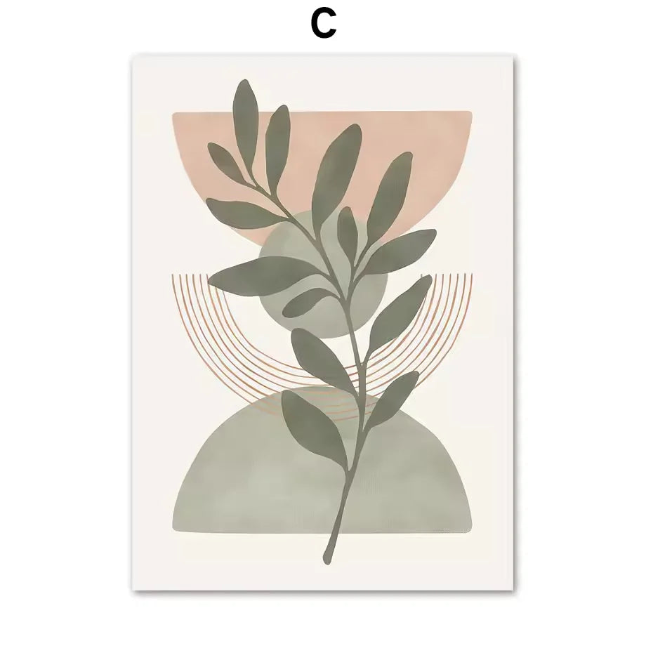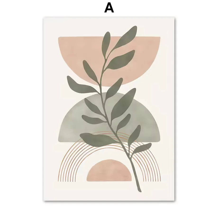 Boho Green Leaf Sun Geometry Nordic Canvas Painting Abstract Bohemian Simple Lines Posters Prints Pictures Wall Art Room Decor