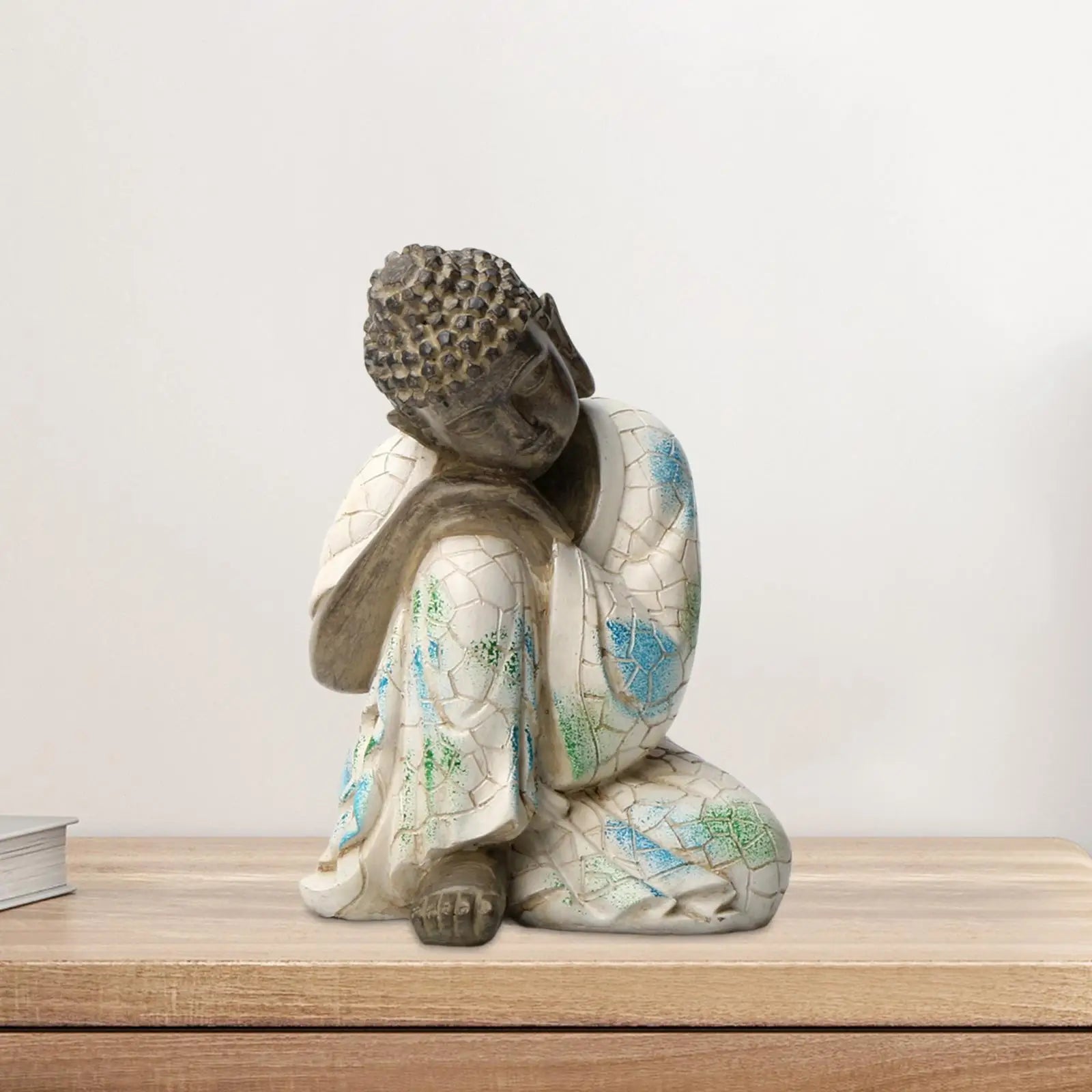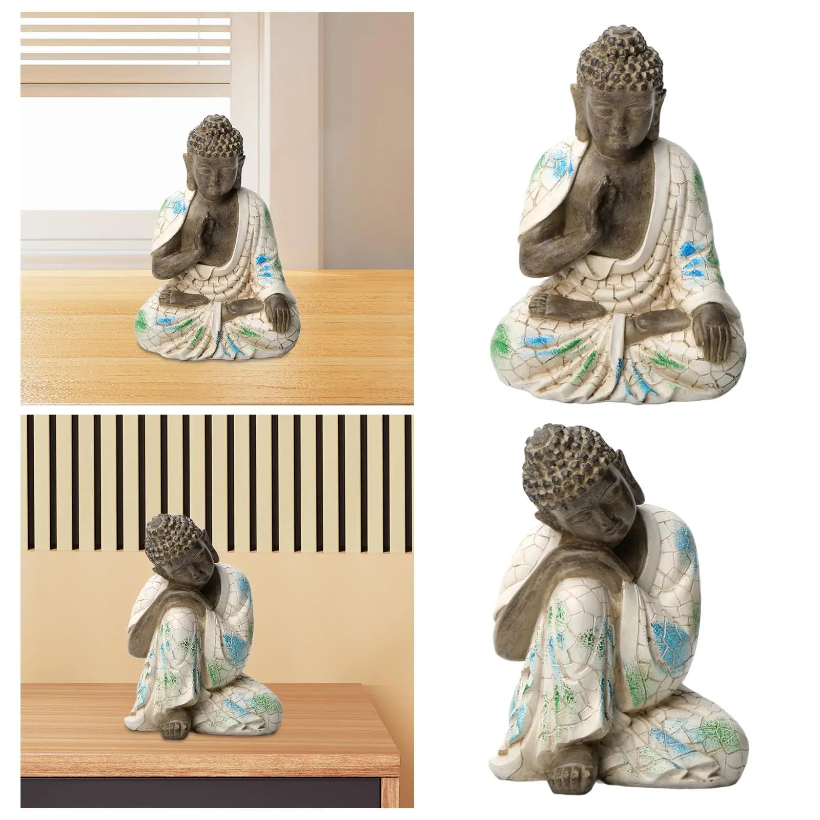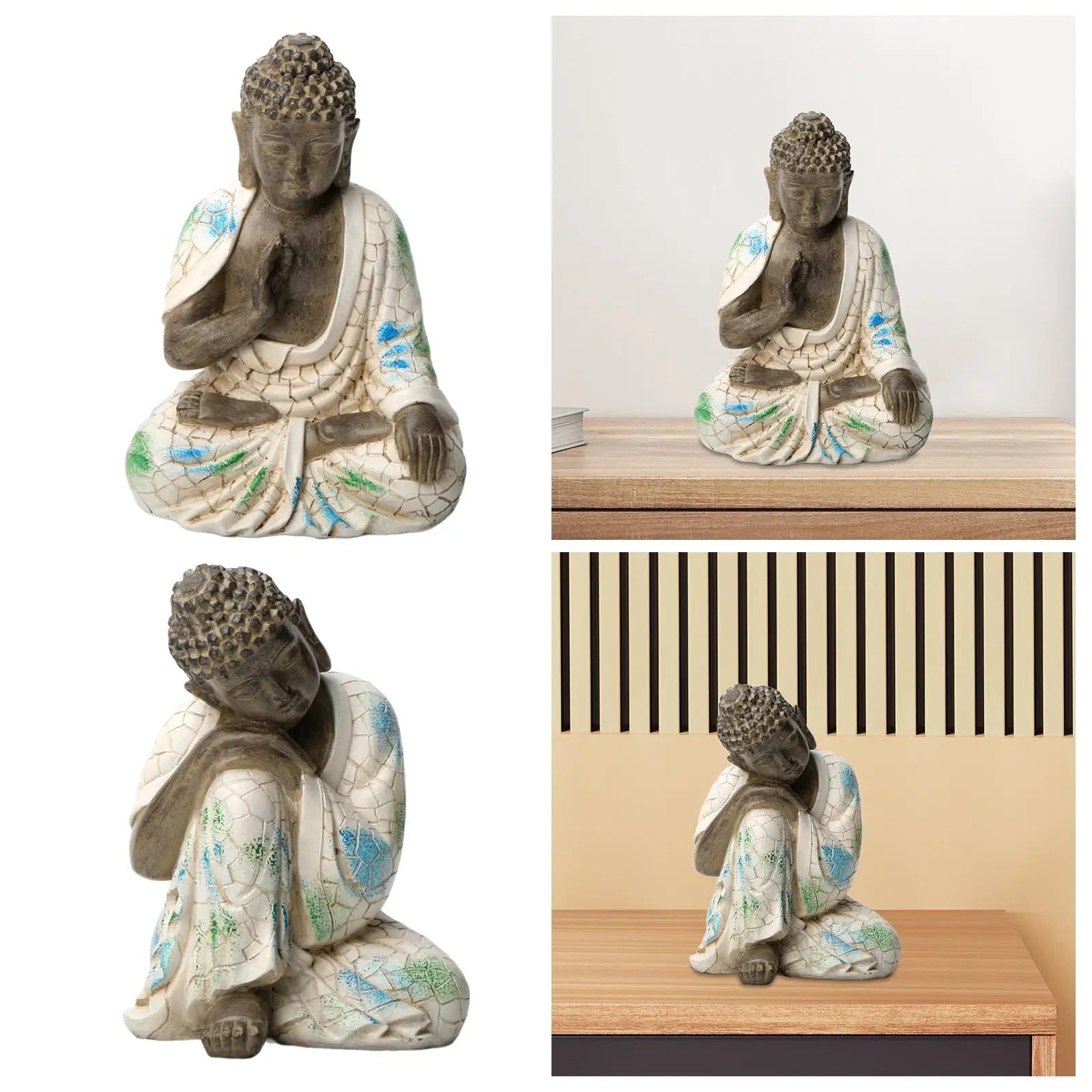 Buddha Statue Resin Small Feng Shui Decor Decorative Sculpture Desktop Ornament for Bookshelf Courtyard Patio Porch Office