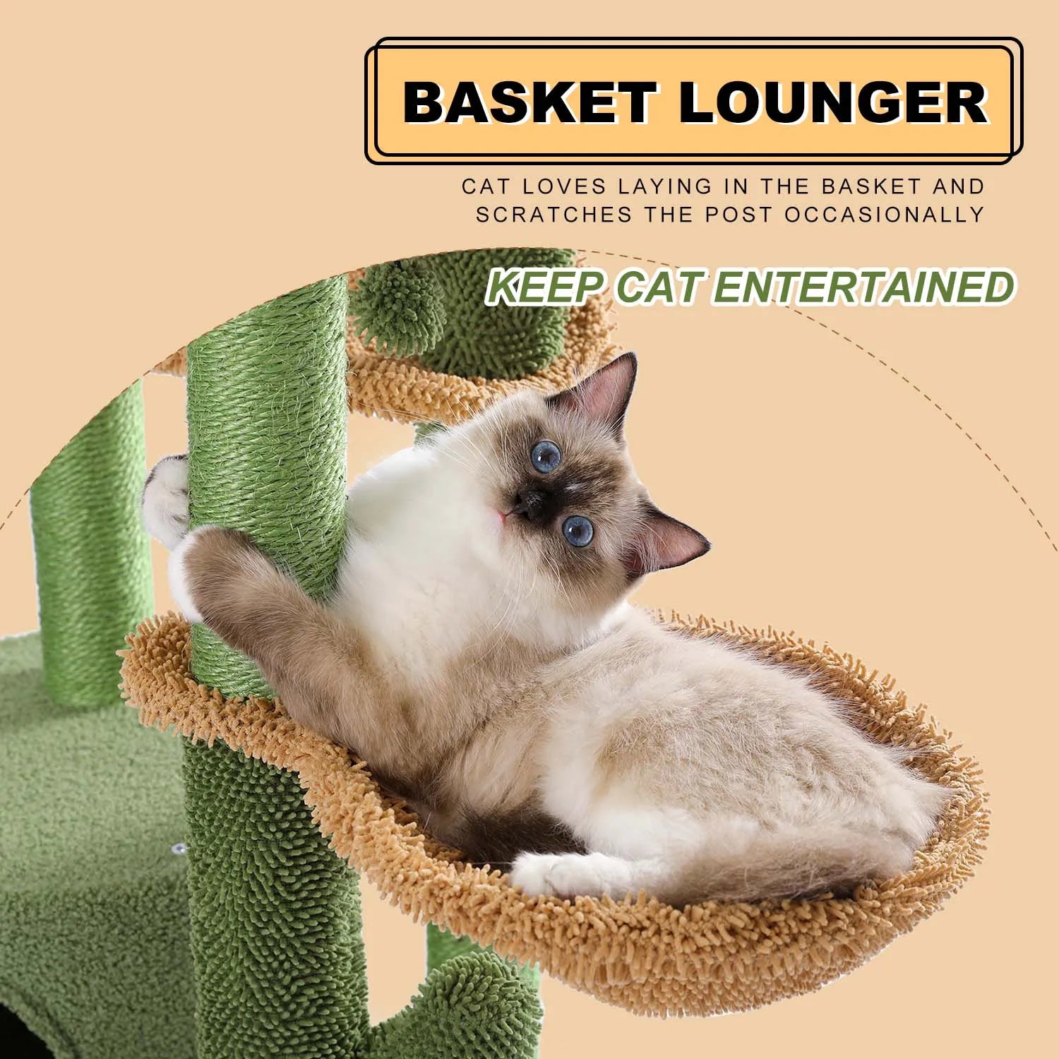 Cactus Cat Tree for Indoor Cats, Small Cat Tower with Sisal Scratching Post Cozy Condo Perches, Cat Accessories, Kitten Toys