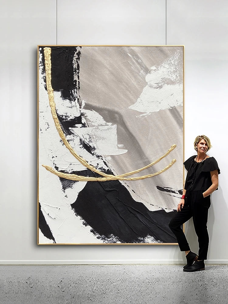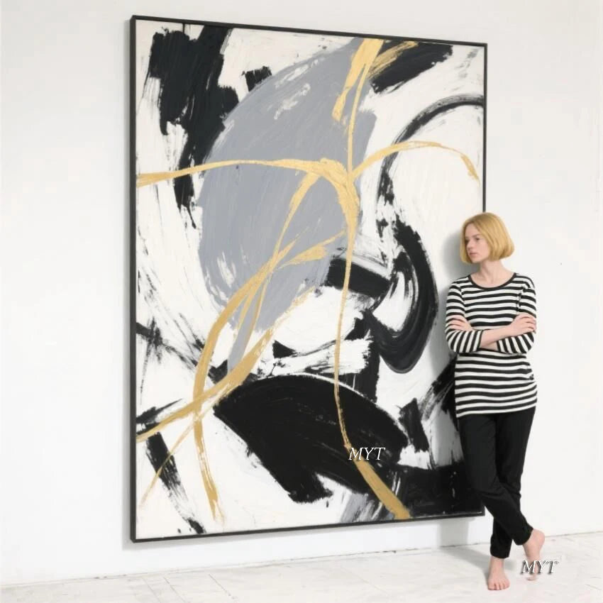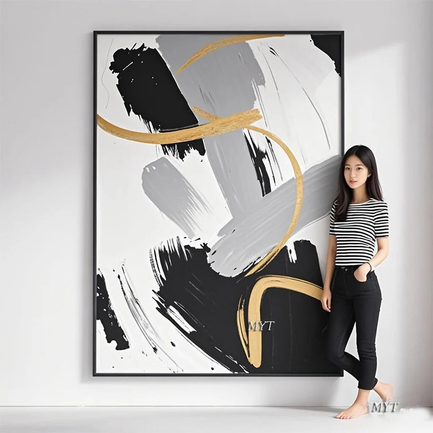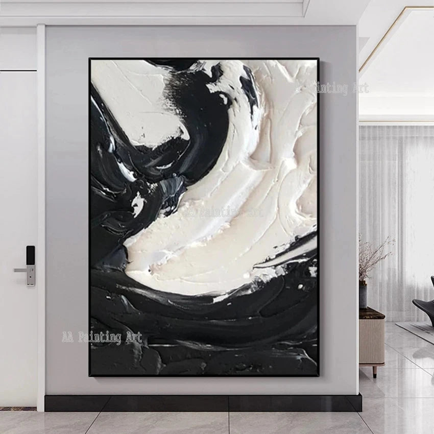 Canvas Thick Pigment Modern Painting Black and White Canvas Acrylic 100% Hand-painted Simple Abstract Oil Painting Modern Art