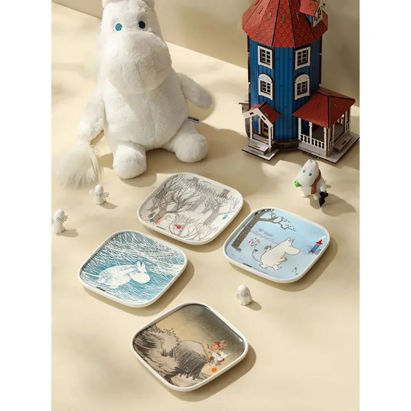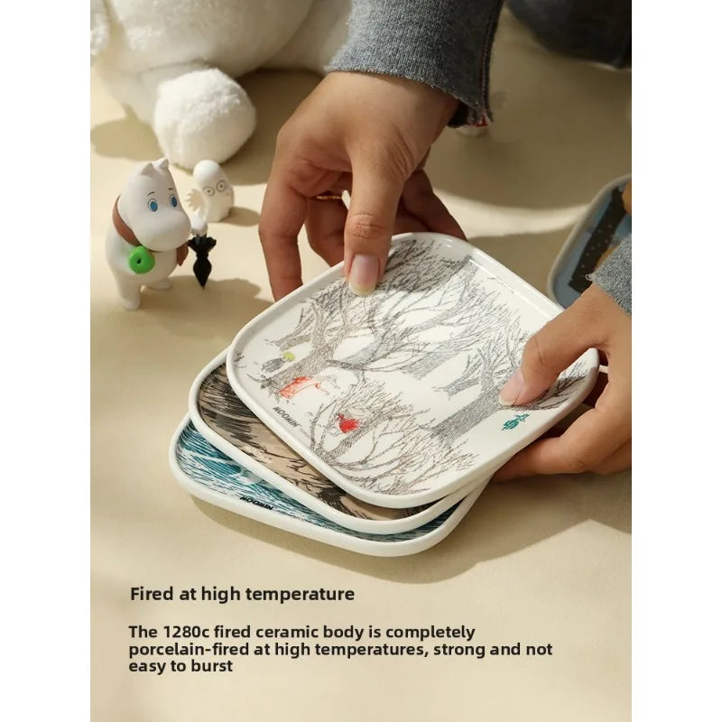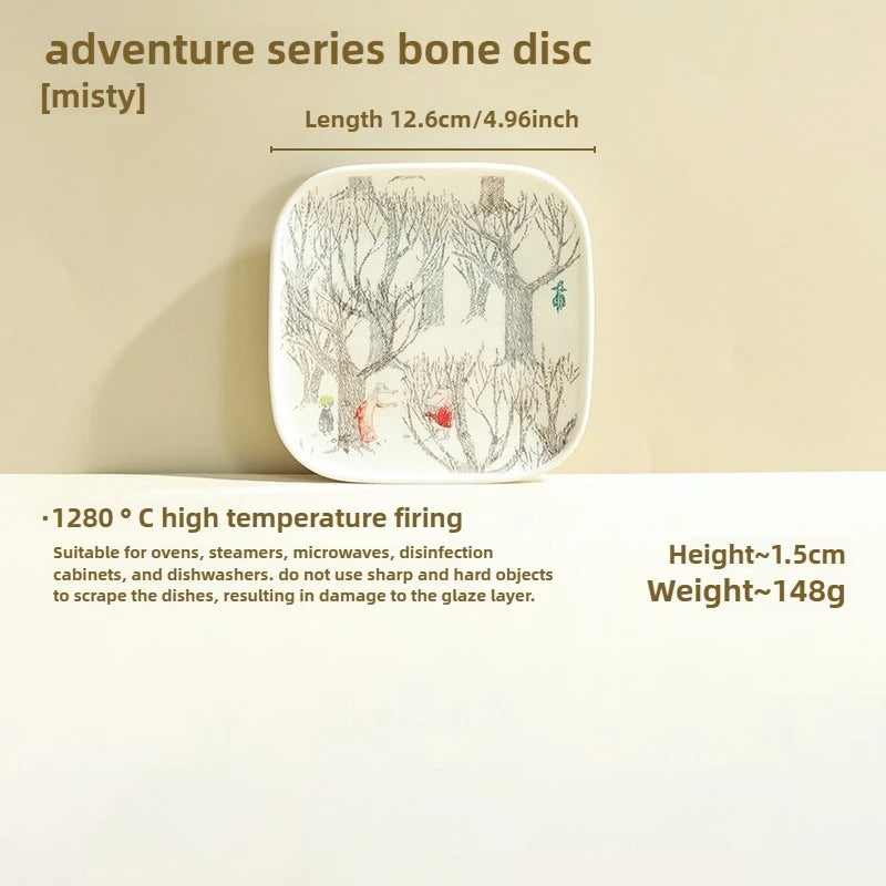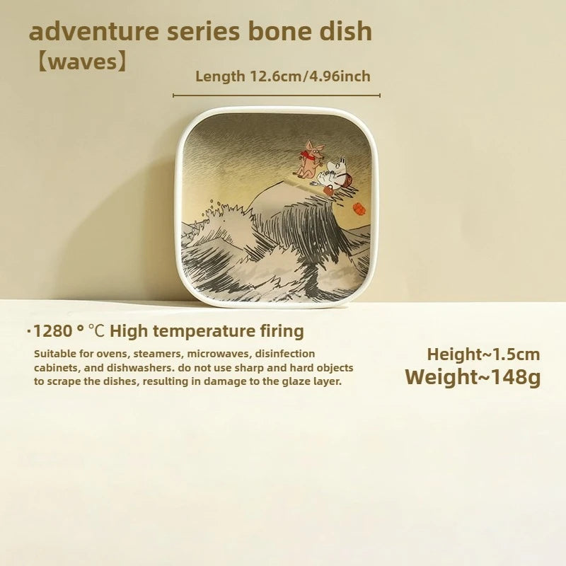 Cartoon adventure hippopotamus pattern ceramic plate, modern household dining plate, Japanese dipping sauce dish, sushi plate