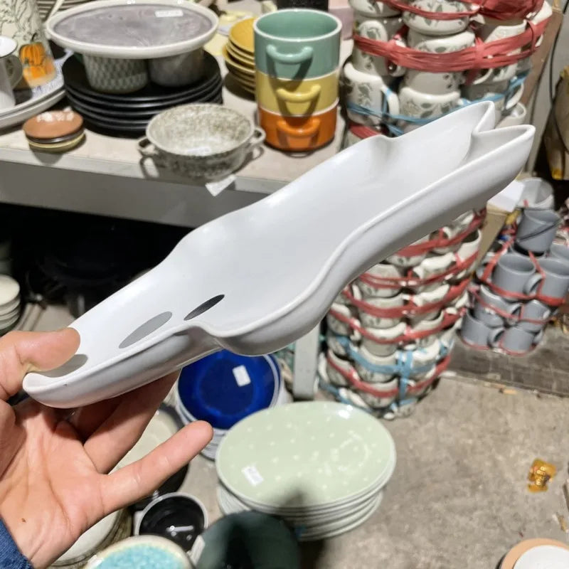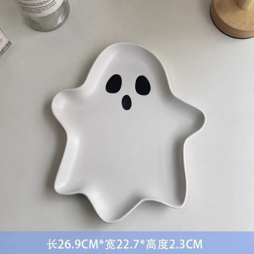 Cartoon Ghost Decorative Plate 3D Irregular Ceramic Dish Large Capacity Ghost Storage Tray Food Dessert Candy Salad Snack Dish