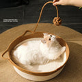 Cat Bed Handmade Rattan Woven Pet Nest Removable Washable Warm Pad All-Season Cat Scratch Board Winter Warm Cat House for Cats