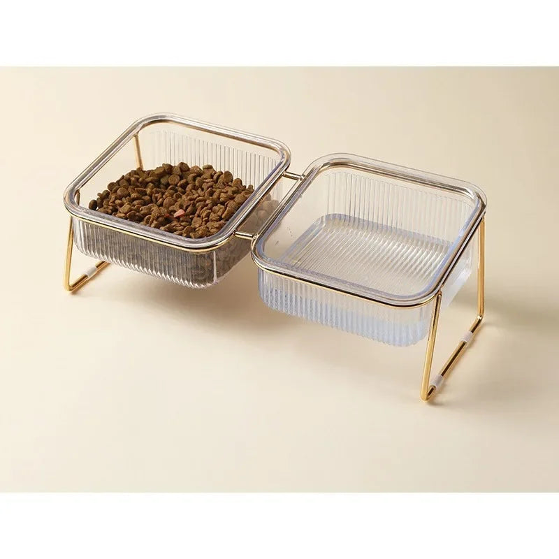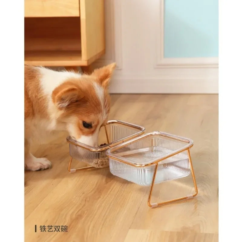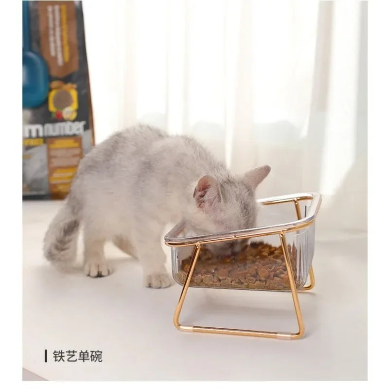 Cat Bowls Plastic Tall Cat Bowls Slanted Neck Nursing Spine Water Bowls Cat Food Bowls Dogs Pets Easy To Wash Iron Double Bowls