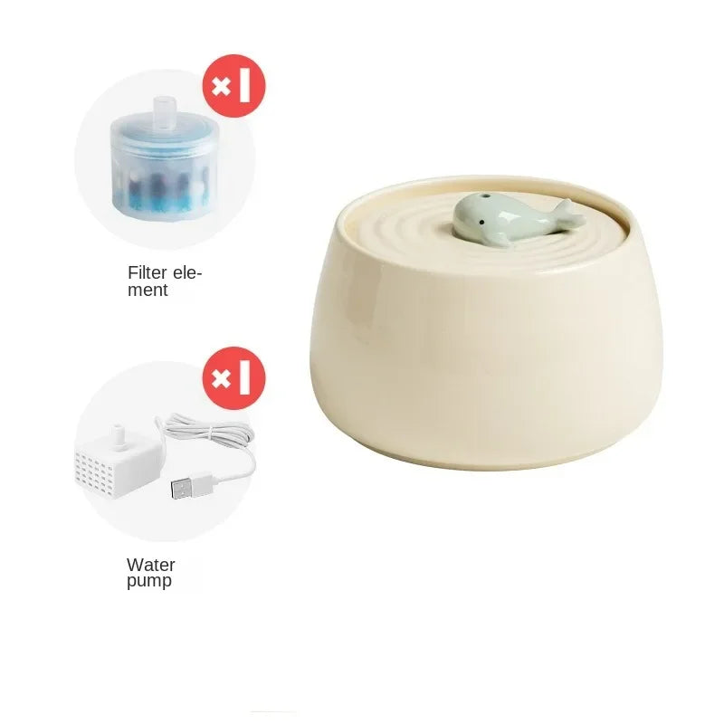 Cat Ceramic Automatic Circulating Filter Water Dispenser Pet Supplies Flow Mute Cat Dog Bowl Live Water Feeder Pet Supplies