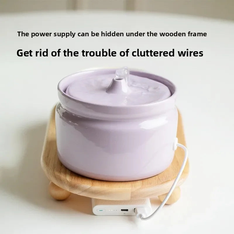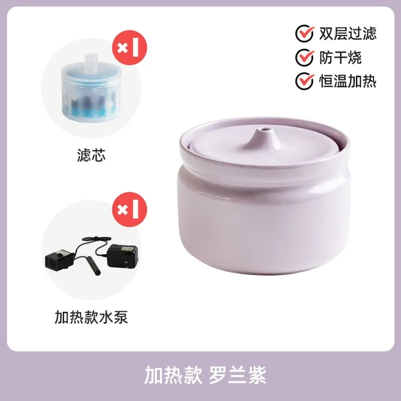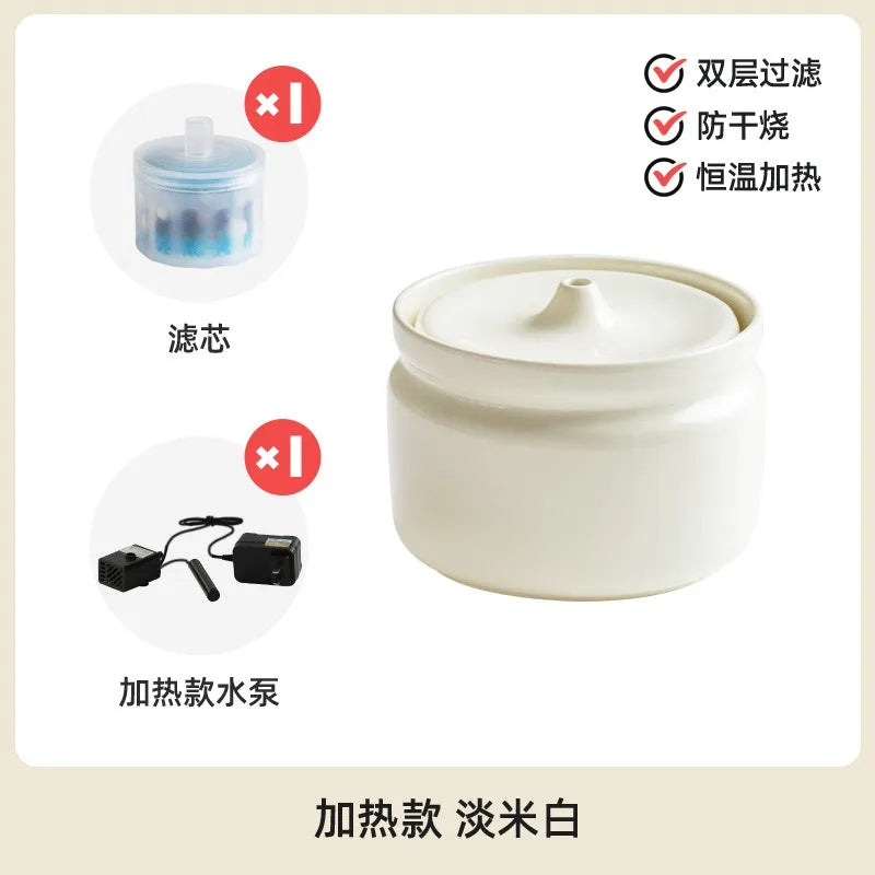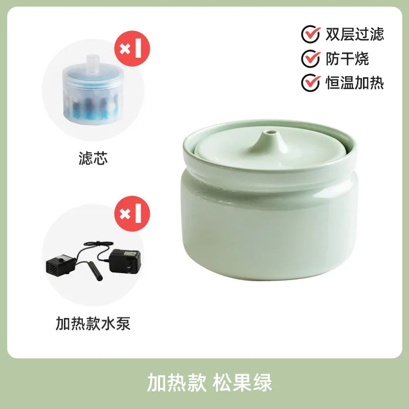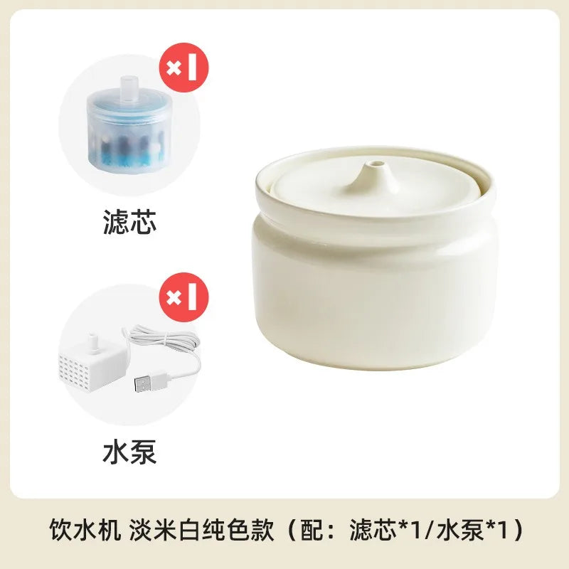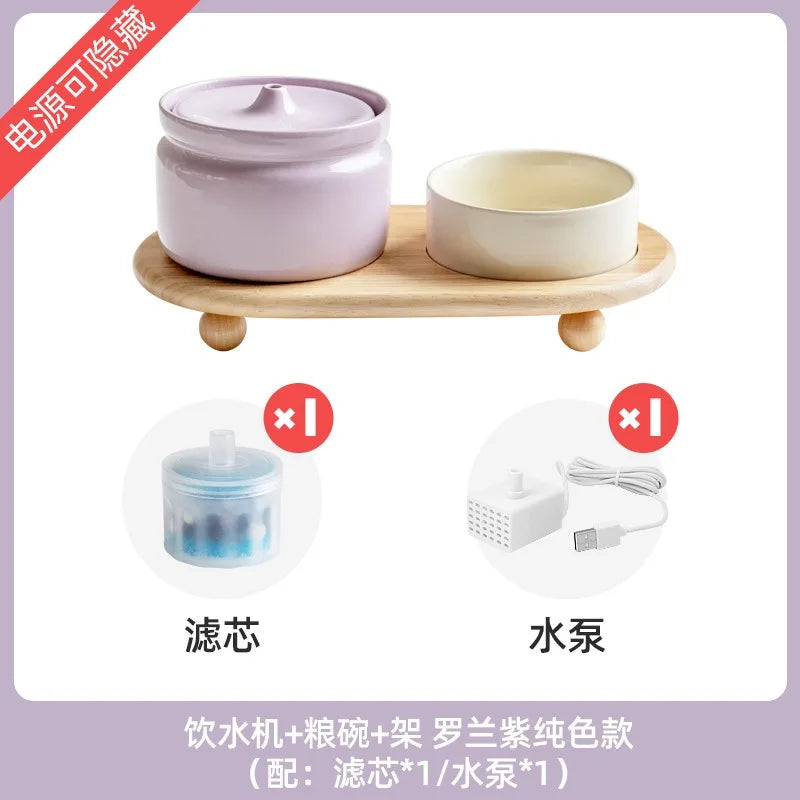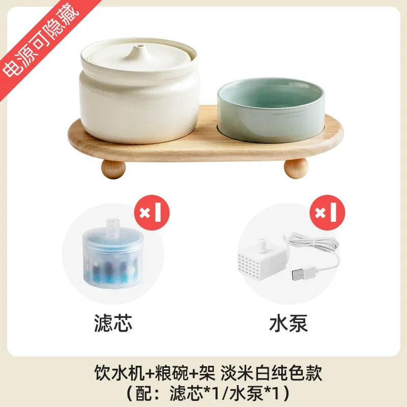 Cat Ceramic Automatic Circulation Filter Water Dispenser Silent Dog Live Water Feeder Double Bowl with Tray Set Pet Supplies