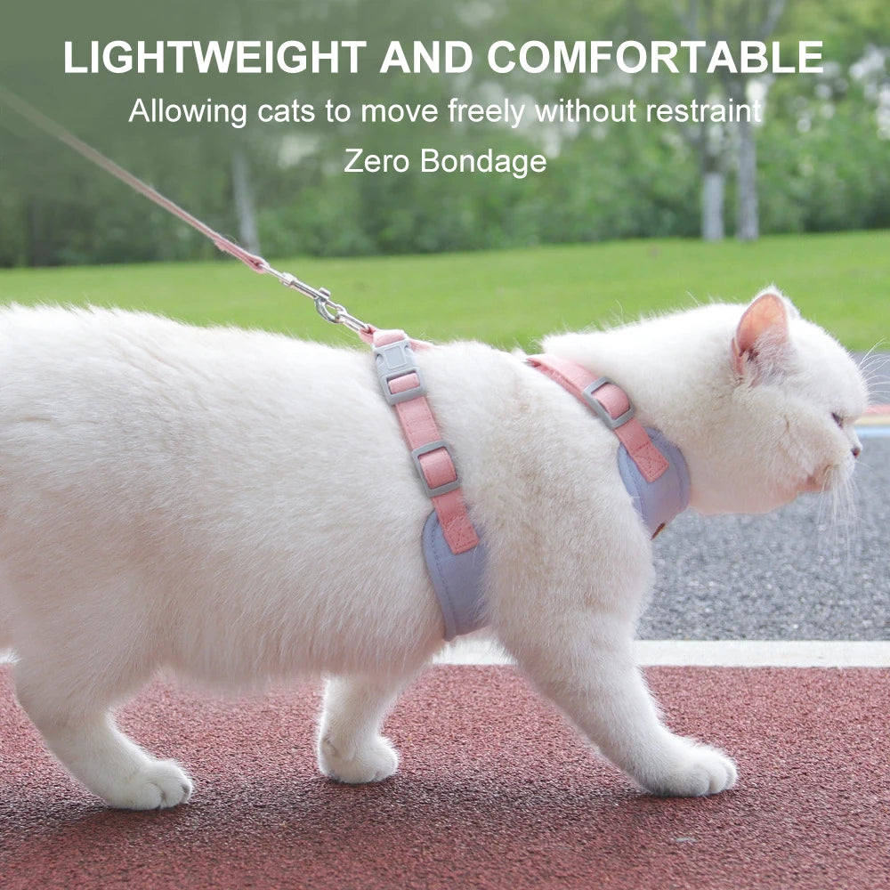 Cat Harness and Leash for Walking Escape Proof,Neck Release Adjustable Harness for Kitten Puppy Medium Large Cats Easy Control