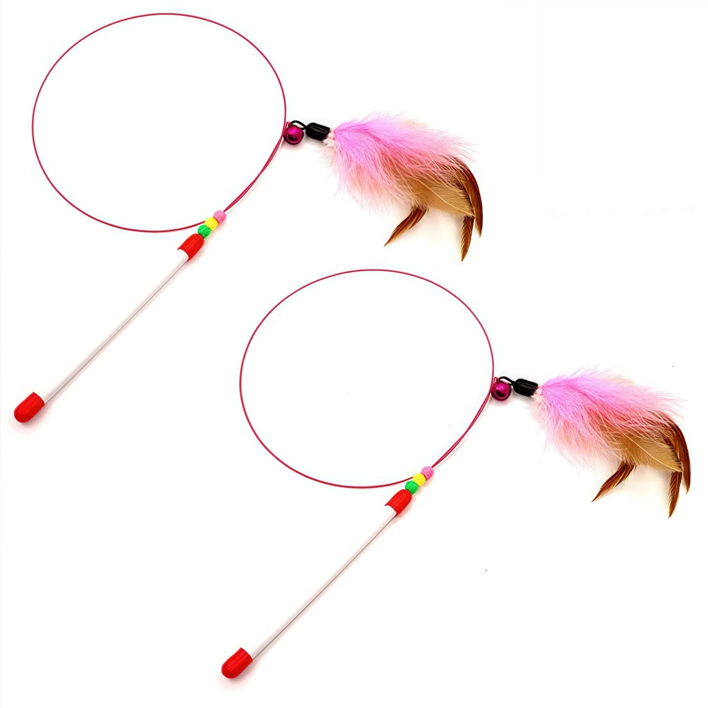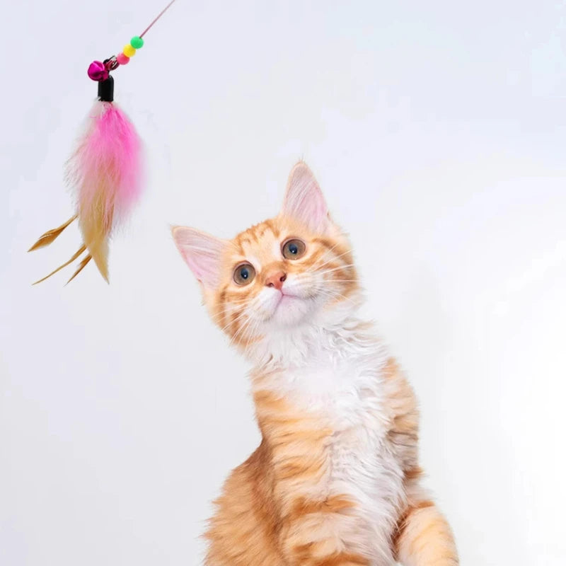 Cat Toy Feather Head Cat Teaser Stick with Bell Cat Teaser Toy - Interactive Bell & Feather Wand Pet Supplies