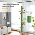 Cat Tree 5-Tier Floor to Ceiling Cat Tower Cactus Tall Climbing Tree with Scratching Post Hammock Dangling Ball for Indoor Cats
