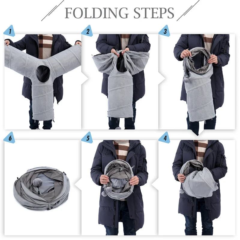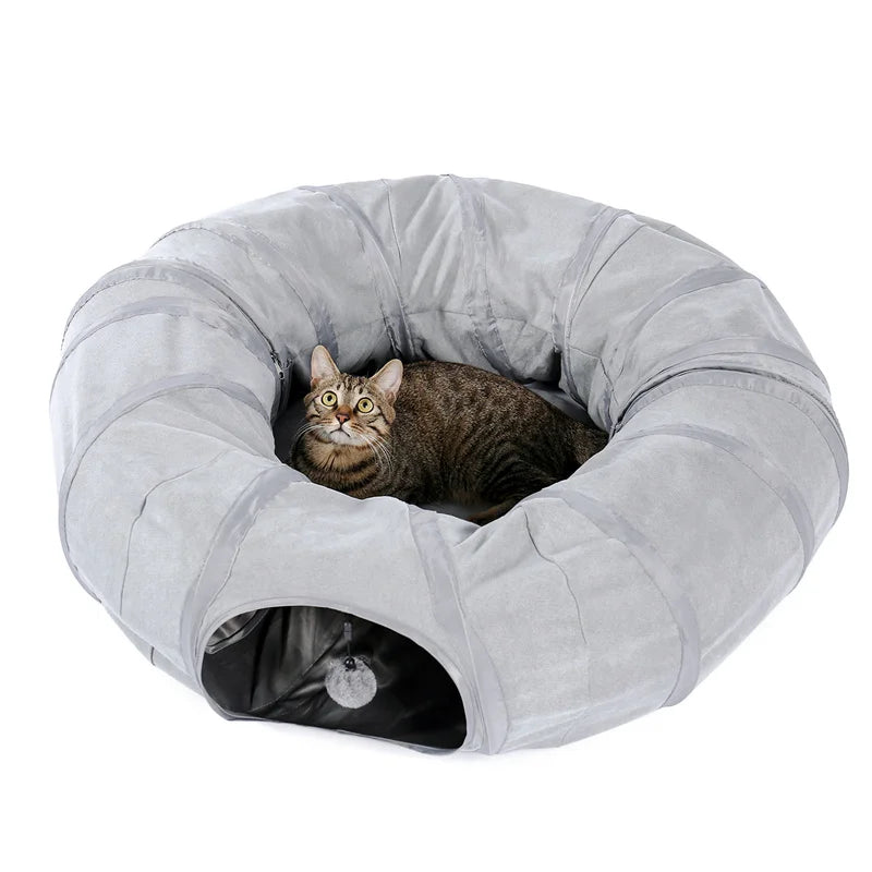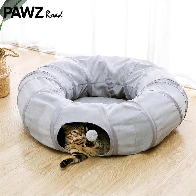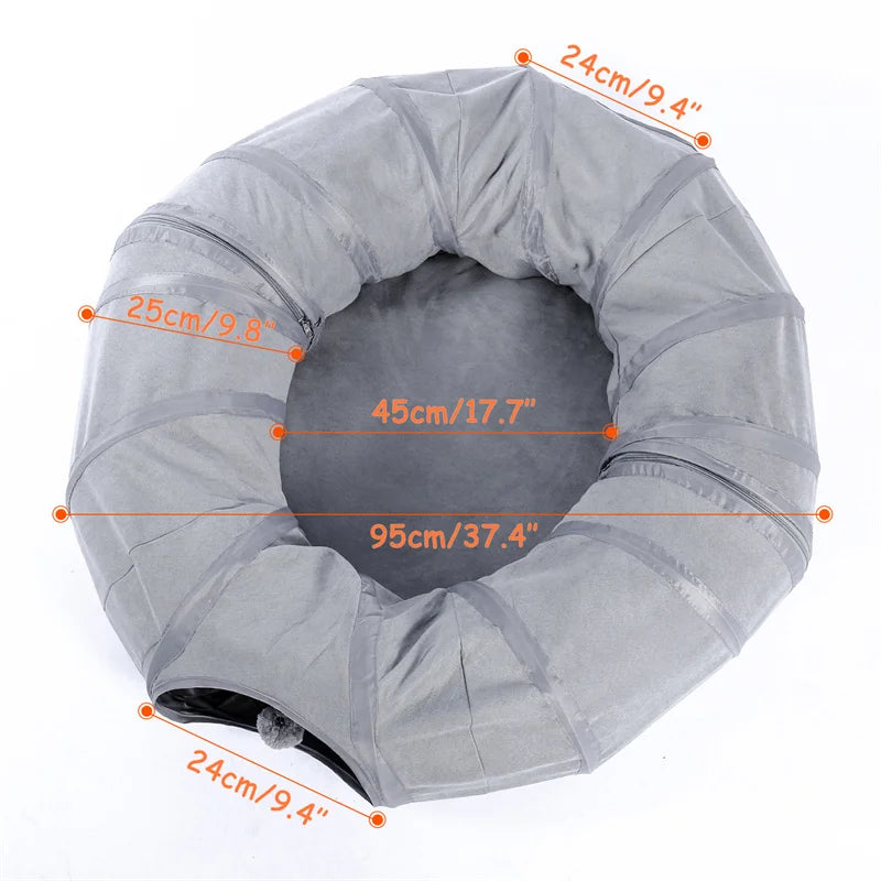 Cat Tunnel Toy Cat Pop Up Bed Collapsible Rabbit Round Tunnel with Mat Cushion 3 Tube Interactive Peek Plush Ball Toy for Indoor