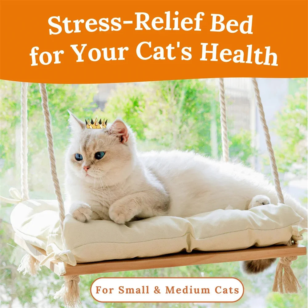 Cat Window Perch Solid Wood Hammock Bed 4 Heavy Duty Suction Cups Plush Cushion Indoor Pet Bed for Small Large Cats