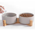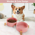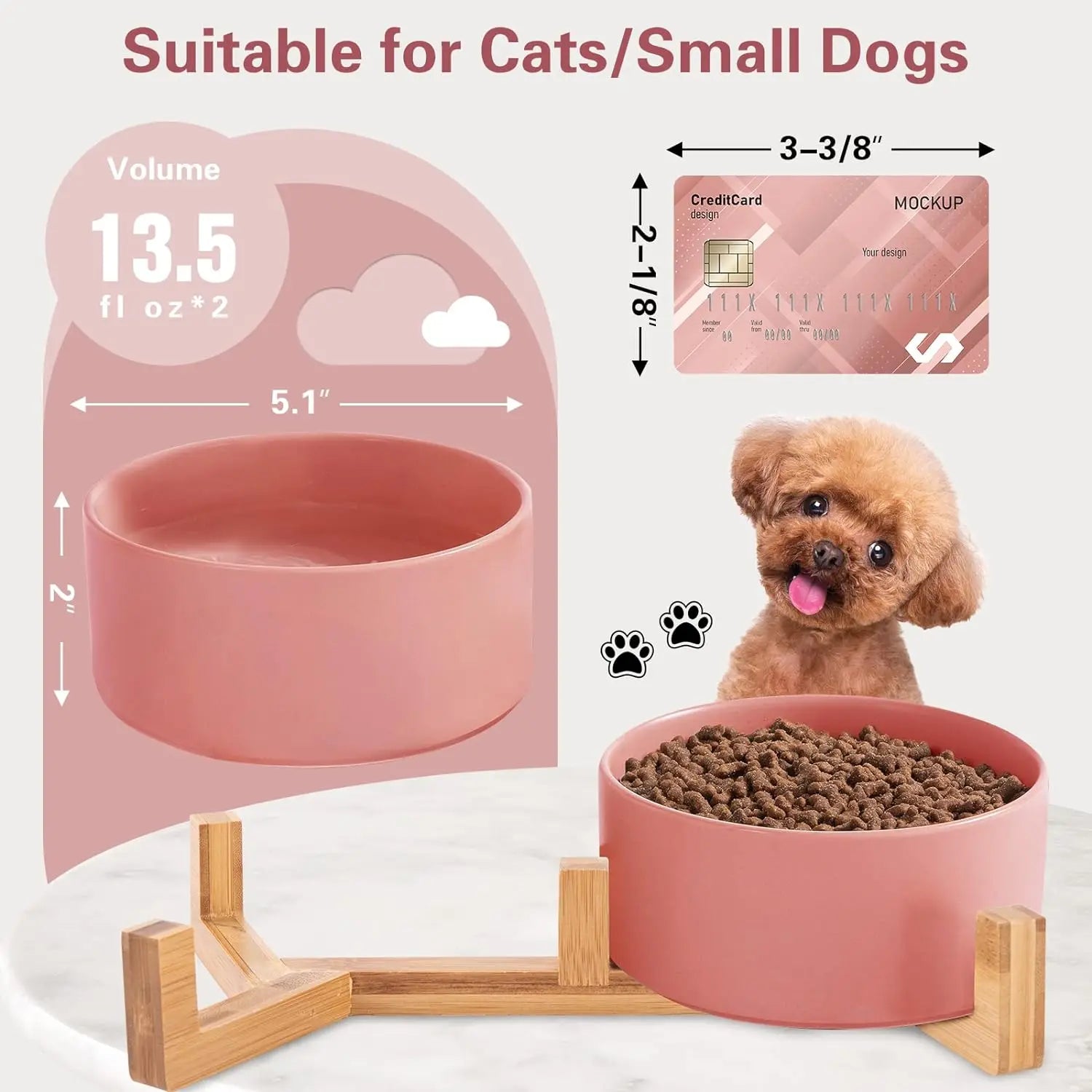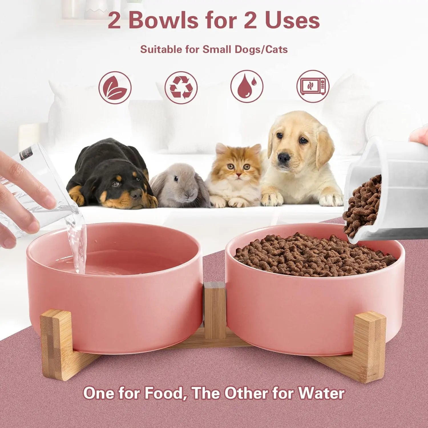 Ceramic Cat Bowls, Food and Water Puppy Bowls Set Dish With Wood Stand, No Spill Pet Ceramic Double Bowl For small Dogs & Cats