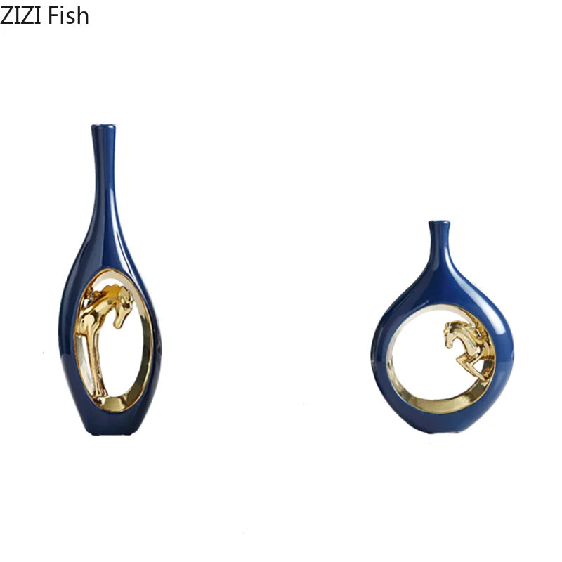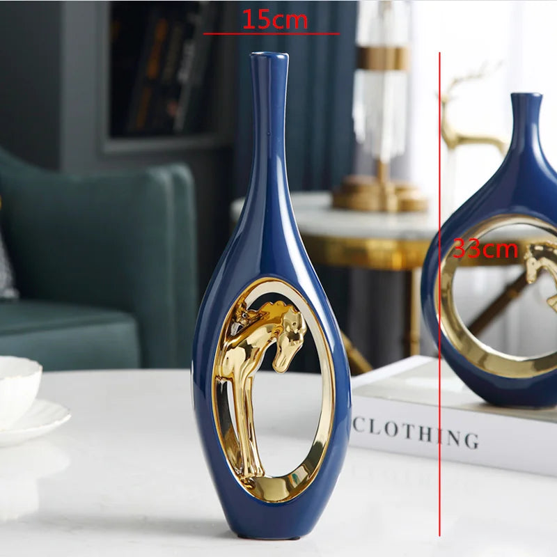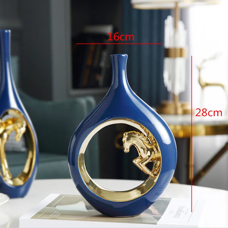 Ceramic Golden Horse Hollow Vase Ceramic Flower Arrangement Accessories Golden Creative Flower Vase Modern Home Decoration