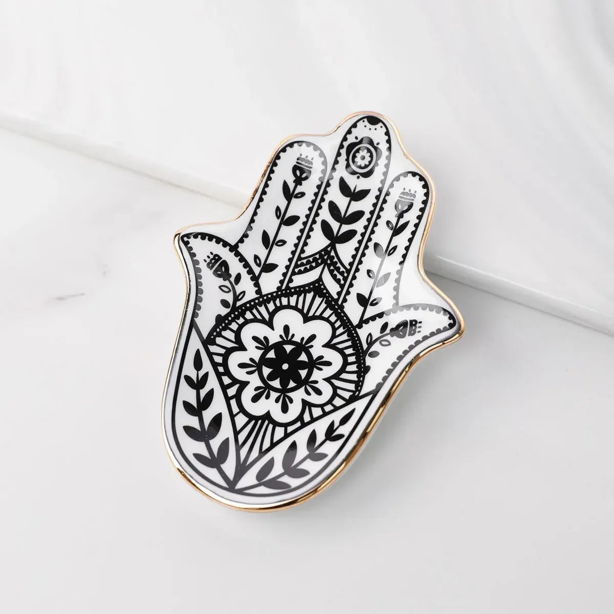 Ceramic hand ornament plate, small jewelry tray, decorative plate, Hamsa hand, craft decoration, European