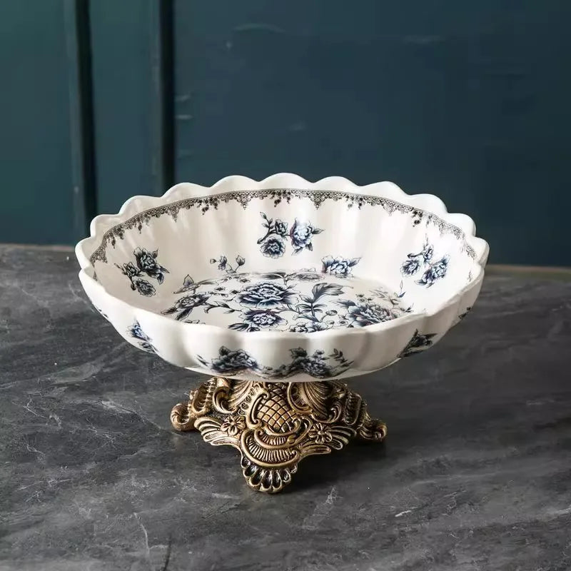 Ceramic household light luxury fruit tray, living room European retro high foot fruit tray, high-end high aesthetic decoration