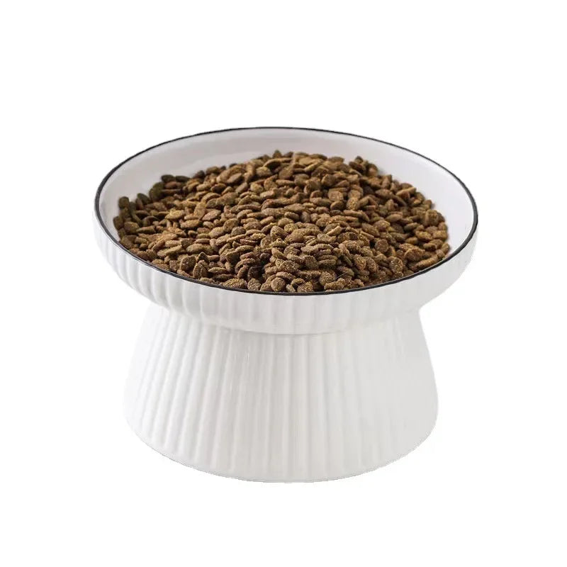Ceramic Raised Cat Bowl With Flower Design, Elevated Cat Food Bowl Water Plate Snack Dish With Stand For Neck Protection