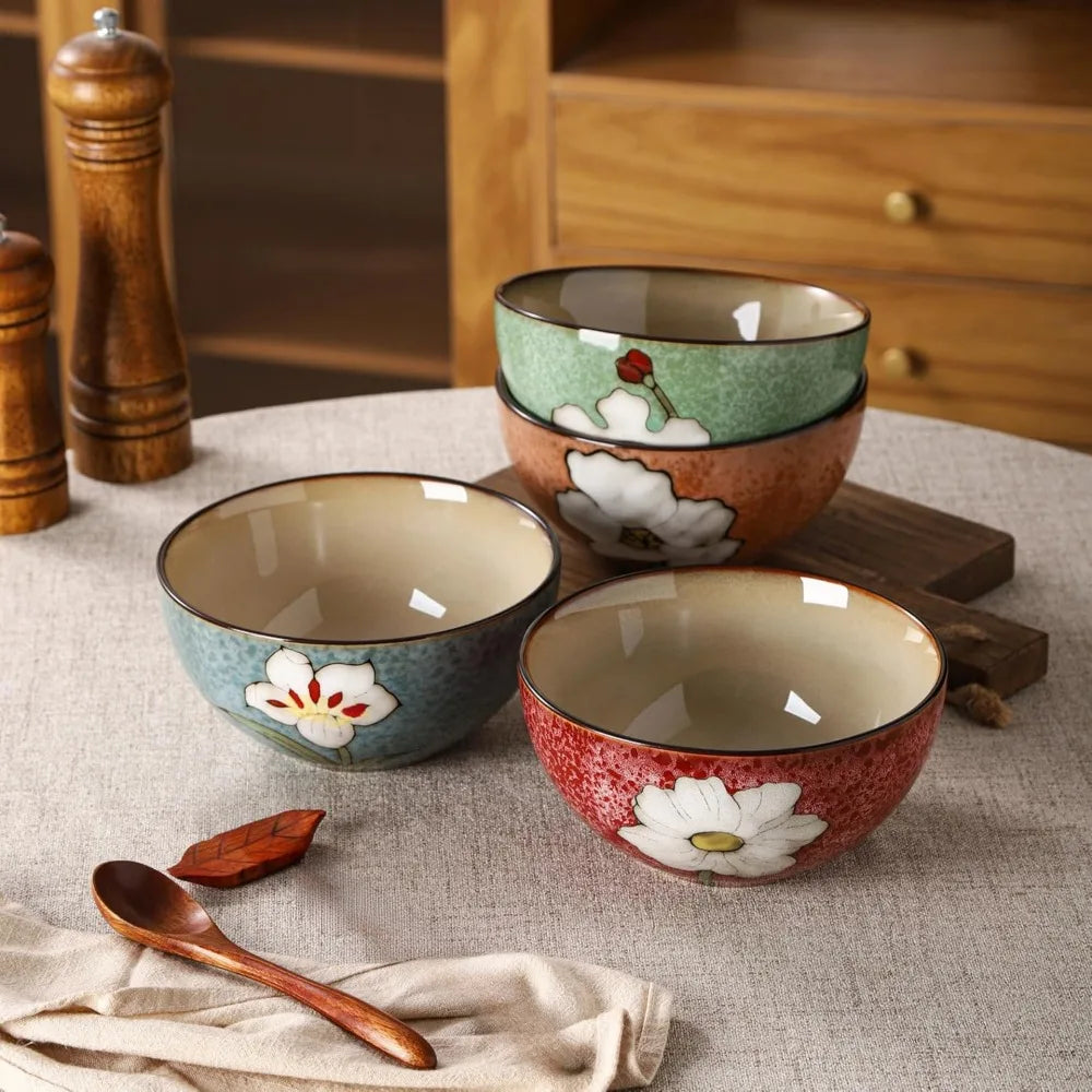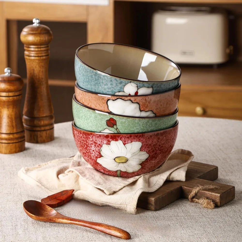 ceramic soup bowls for kitchen, 28oz flower bowls set of 4, suitable for breakfast, lunch, dinner, ideal for ramen, cereal, past