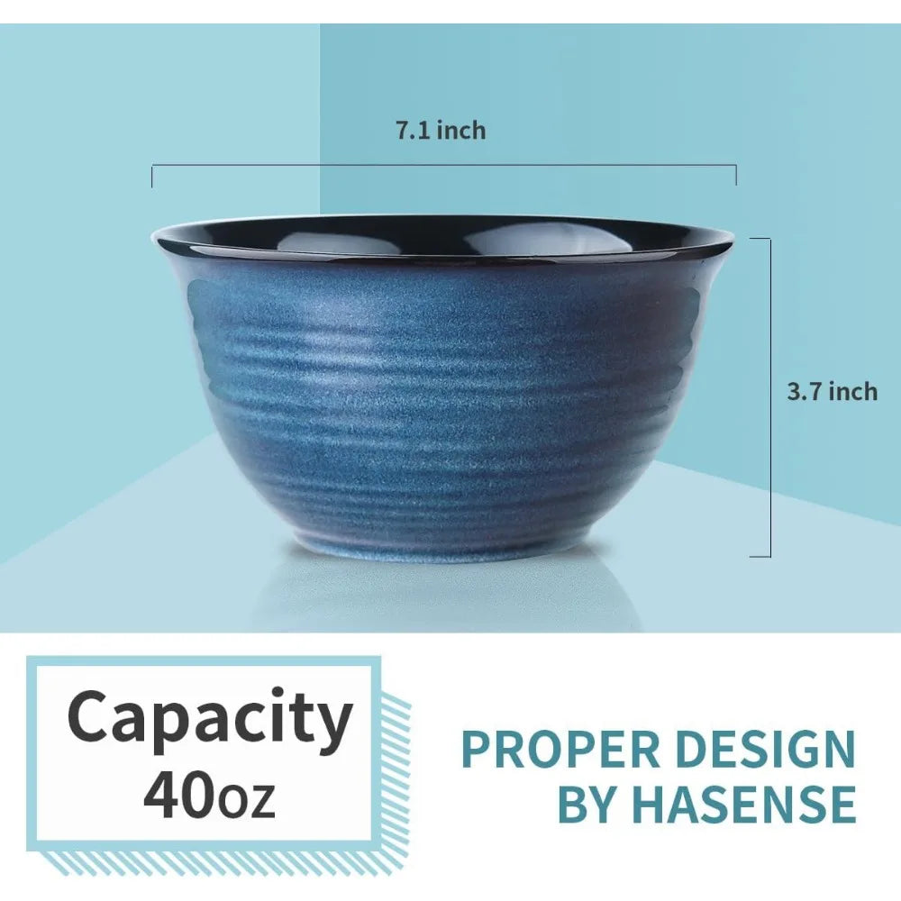 ceramic soup bowls set of 4, 40 ounce large cereal bowls for kitchen, 7 inch serving bowls for salad pasta ramen pho popcorn, d