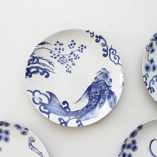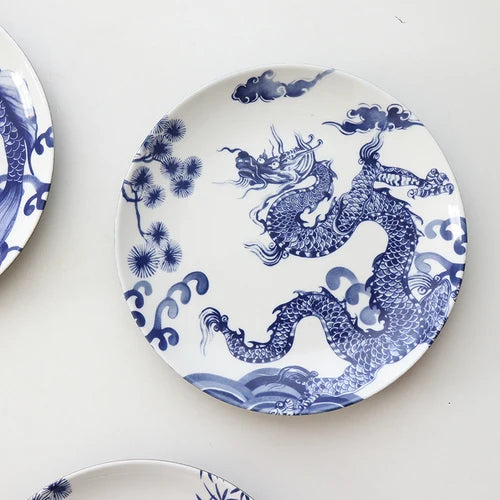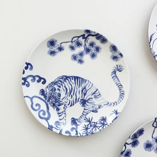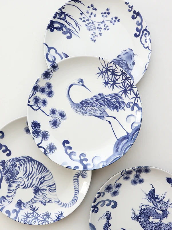 Chinese Painted Auspicious Animals Dessert Plates Vintage Blue and White Underglaze Ceramic Dinner Plate Afternoon Tea Tableware